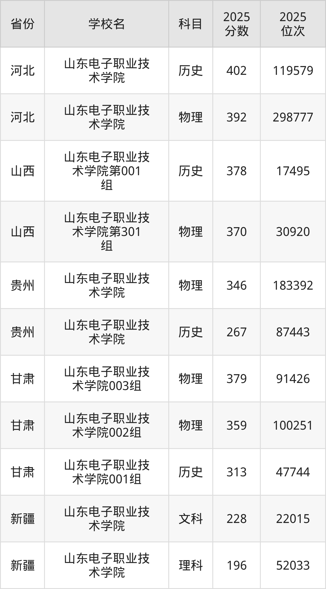下面是山东电子职业技术学院2025年录取分数线各省汇总,一起来了解下吧。