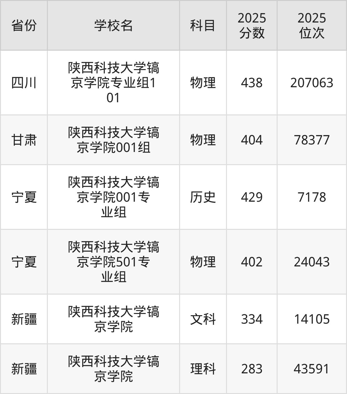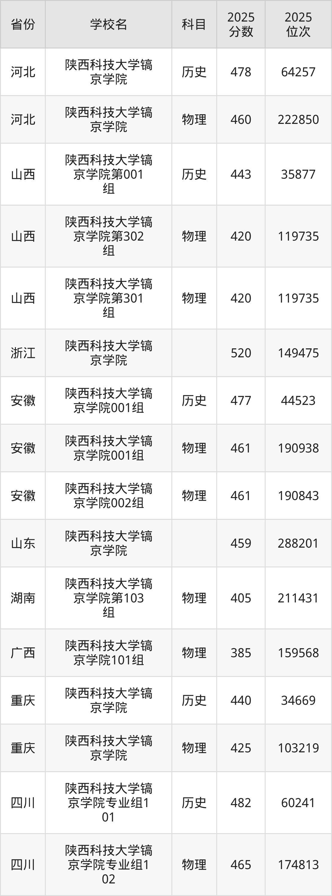 下面是陕西科技大学镐京学院2025年录取分数线各省汇总,一起来了解下吧。