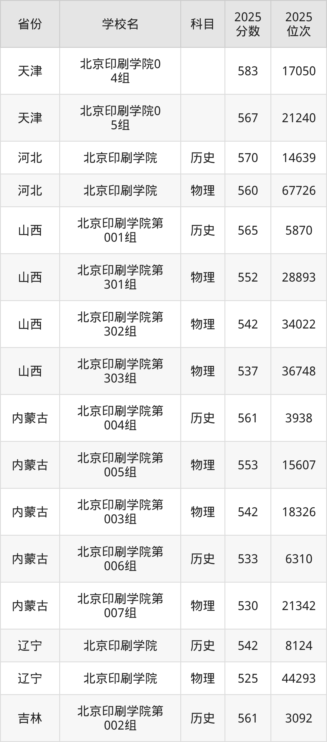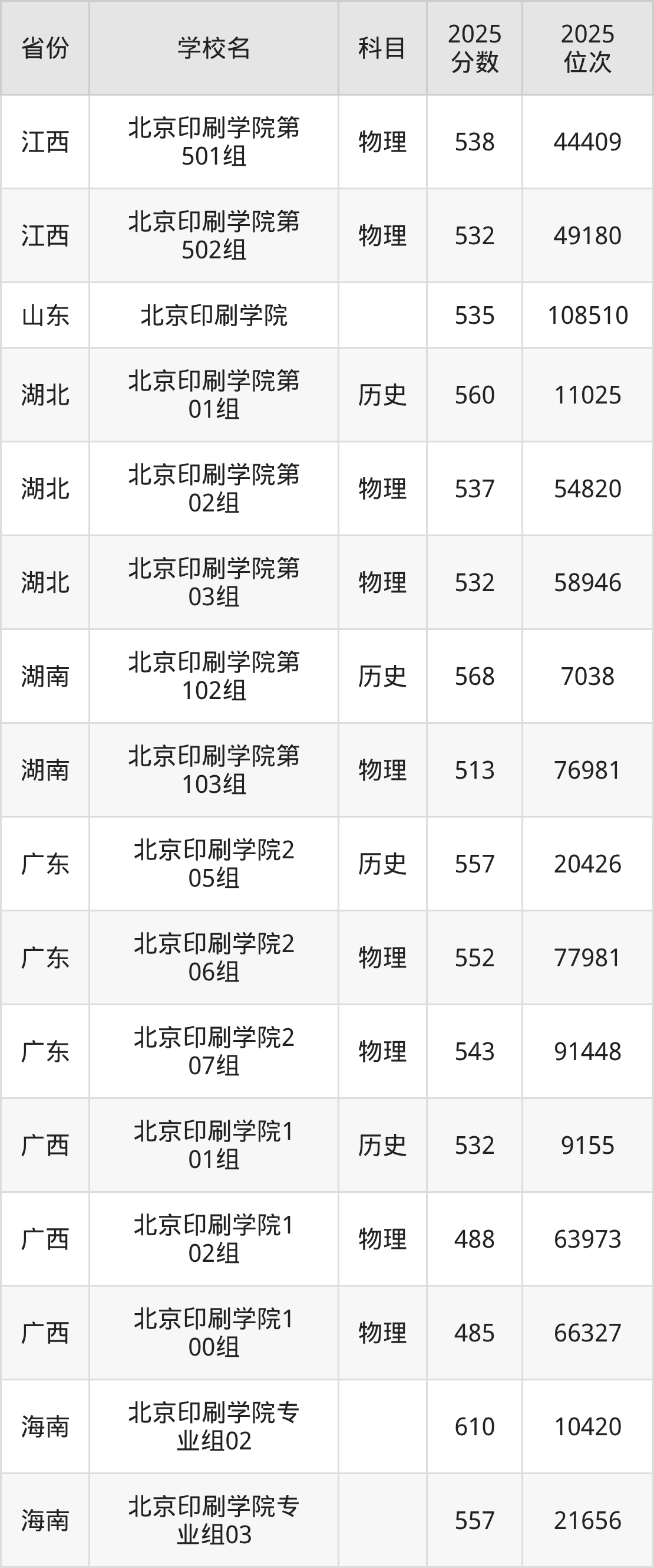 下面是北京印刷学院2025年录取分数线各省汇总,一起来了解下吧。