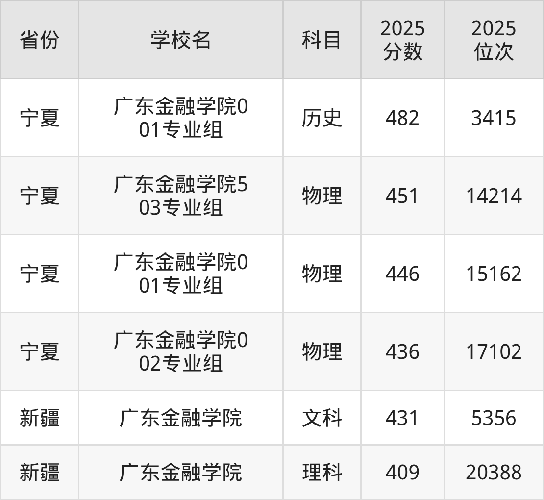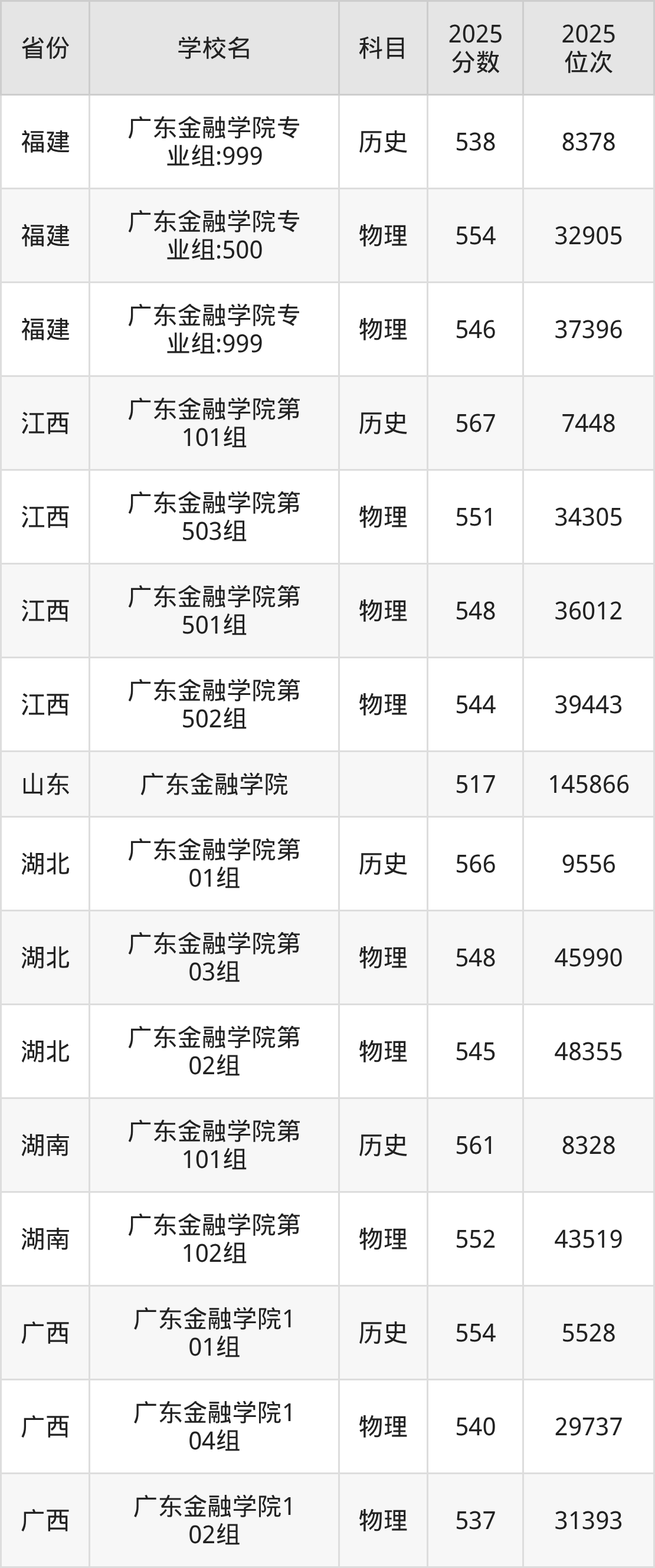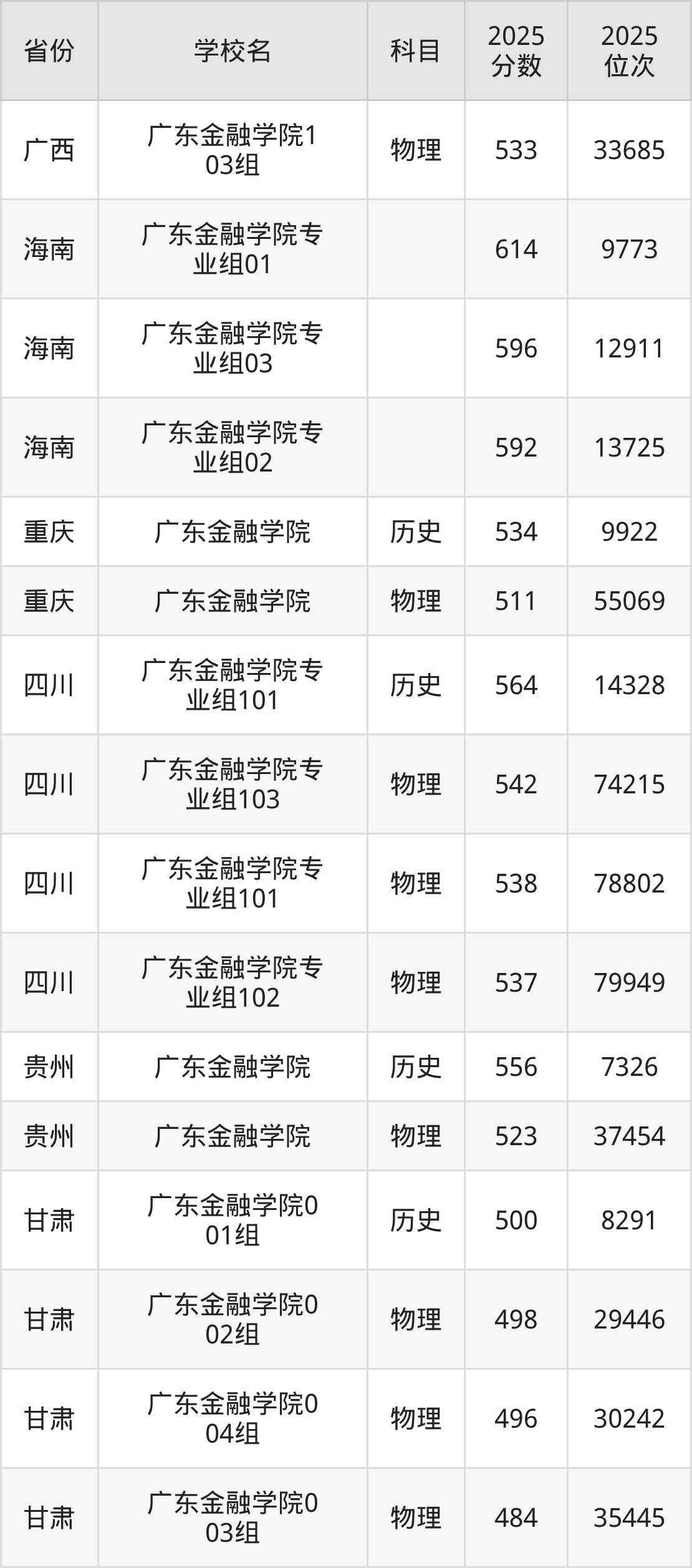 2025年广东金融学院历史类最低分518分(44540名)、物理类最低分510分(146334名)。