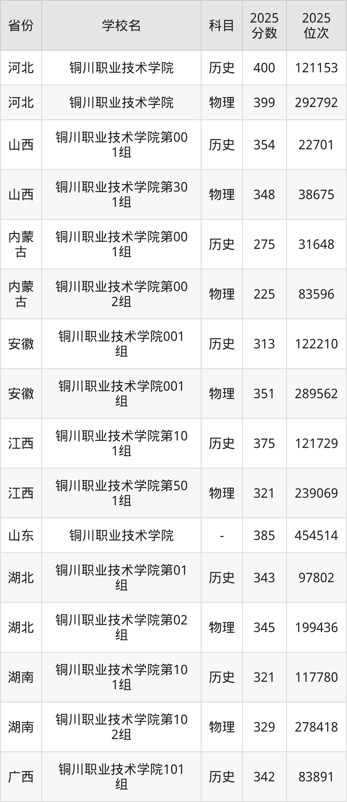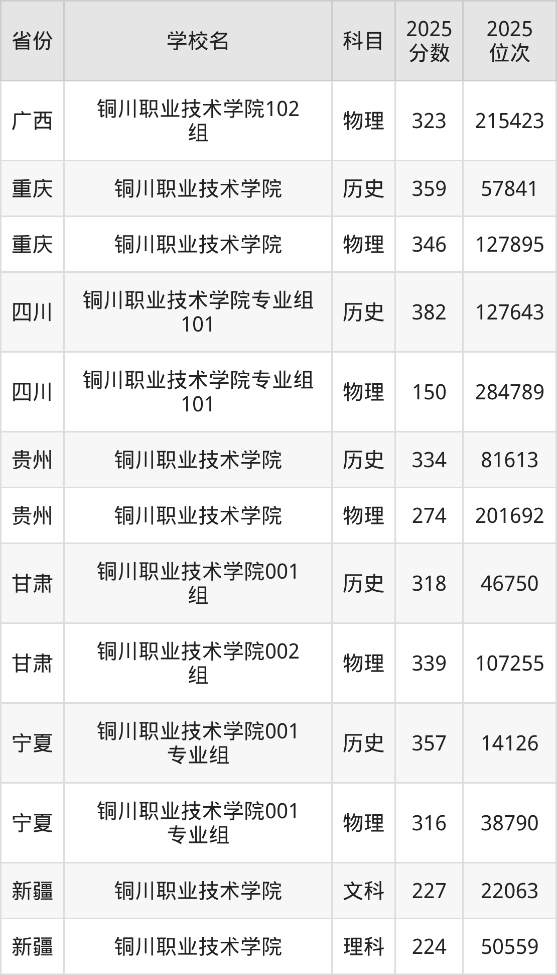 下面是铜川职业技术学院2025年录取分数线各省汇总,一起来了解下吧。