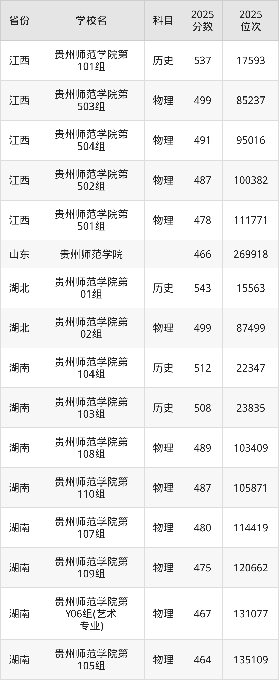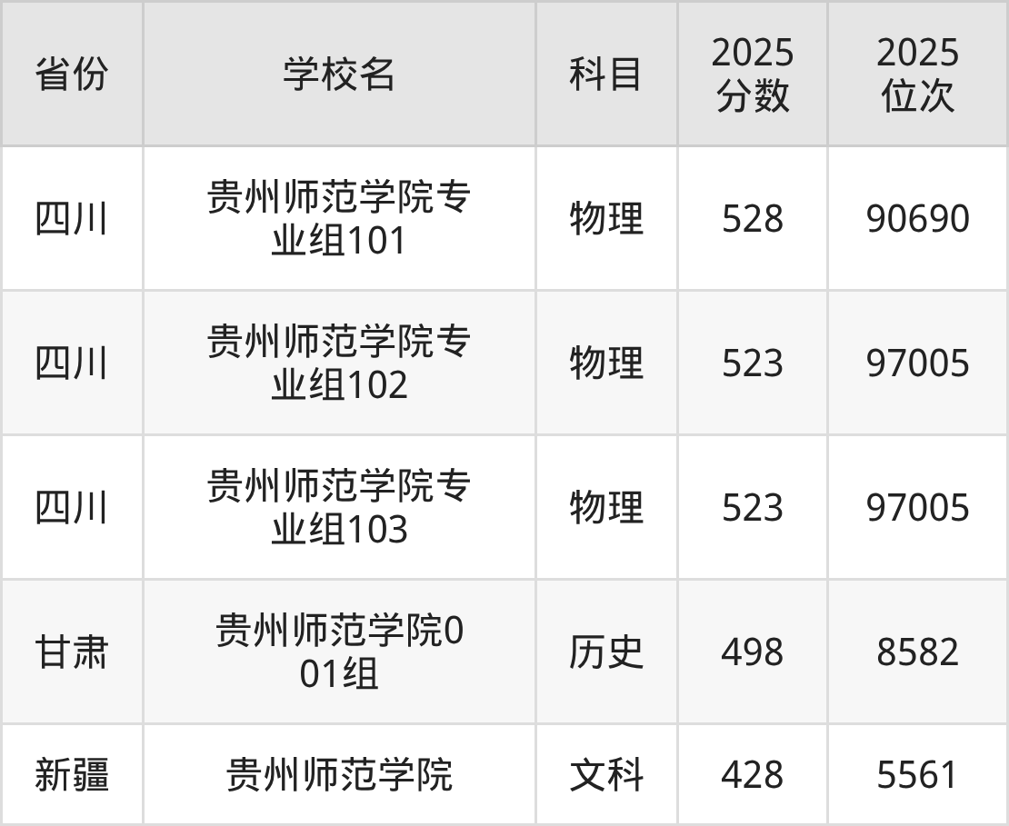 | 贵州师范学院( 民族班) | 物理 | 431 | 115813 |