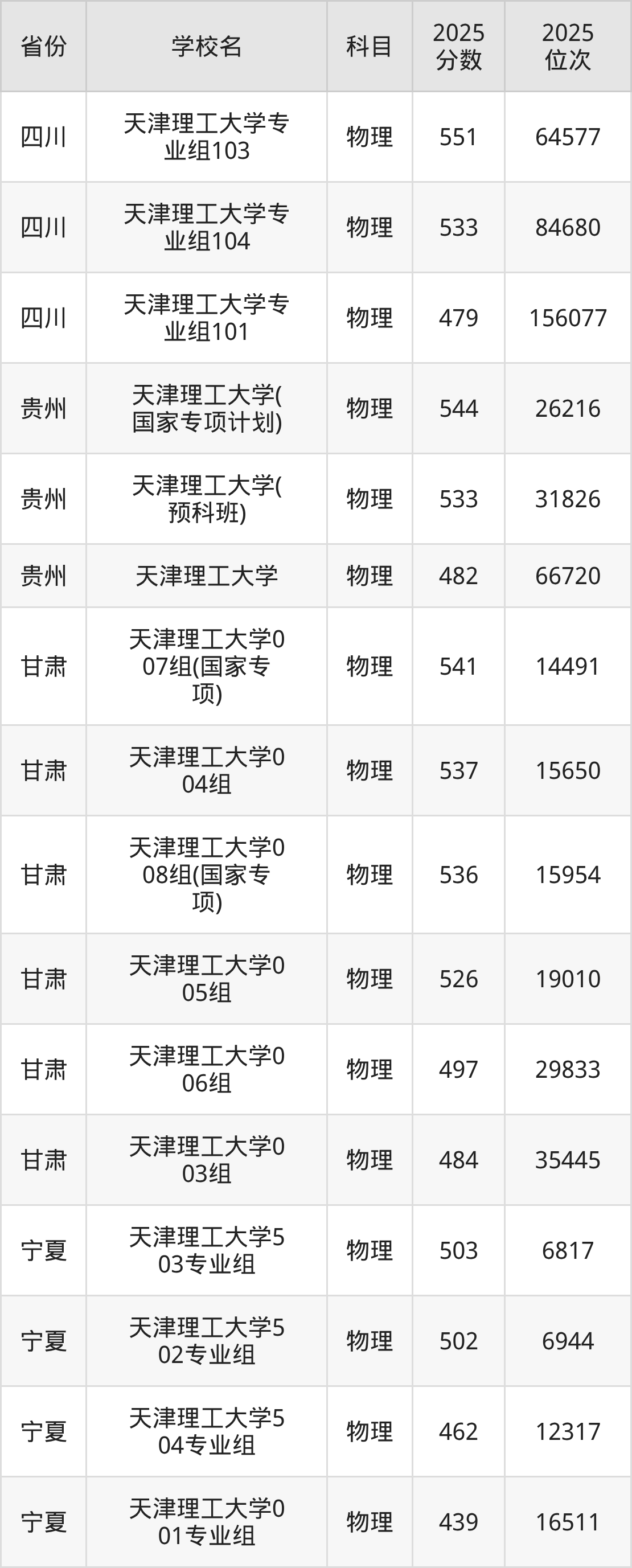 | 学校名 | 2025 分数 | 2025 位次 |