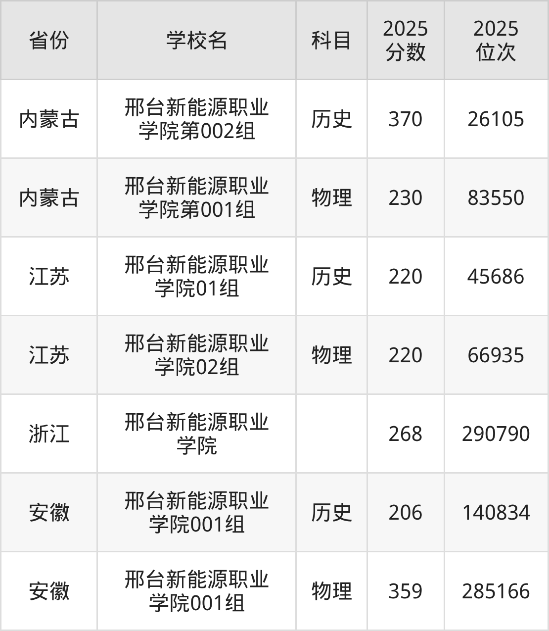 | 邢台新能源职业 学院 | 物理 | 202 | 361373 |