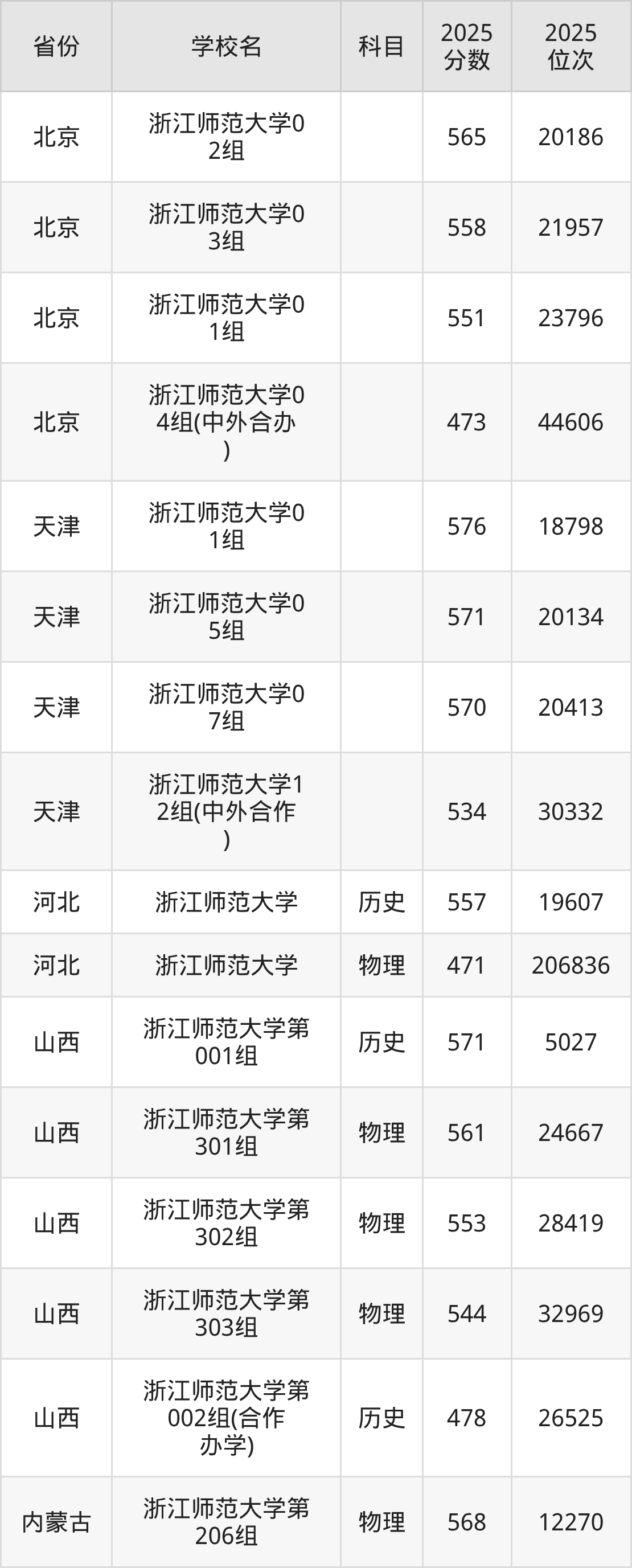 下面是浙江师范大学2025年录取分数线各省汇总,一起来了解下吧。