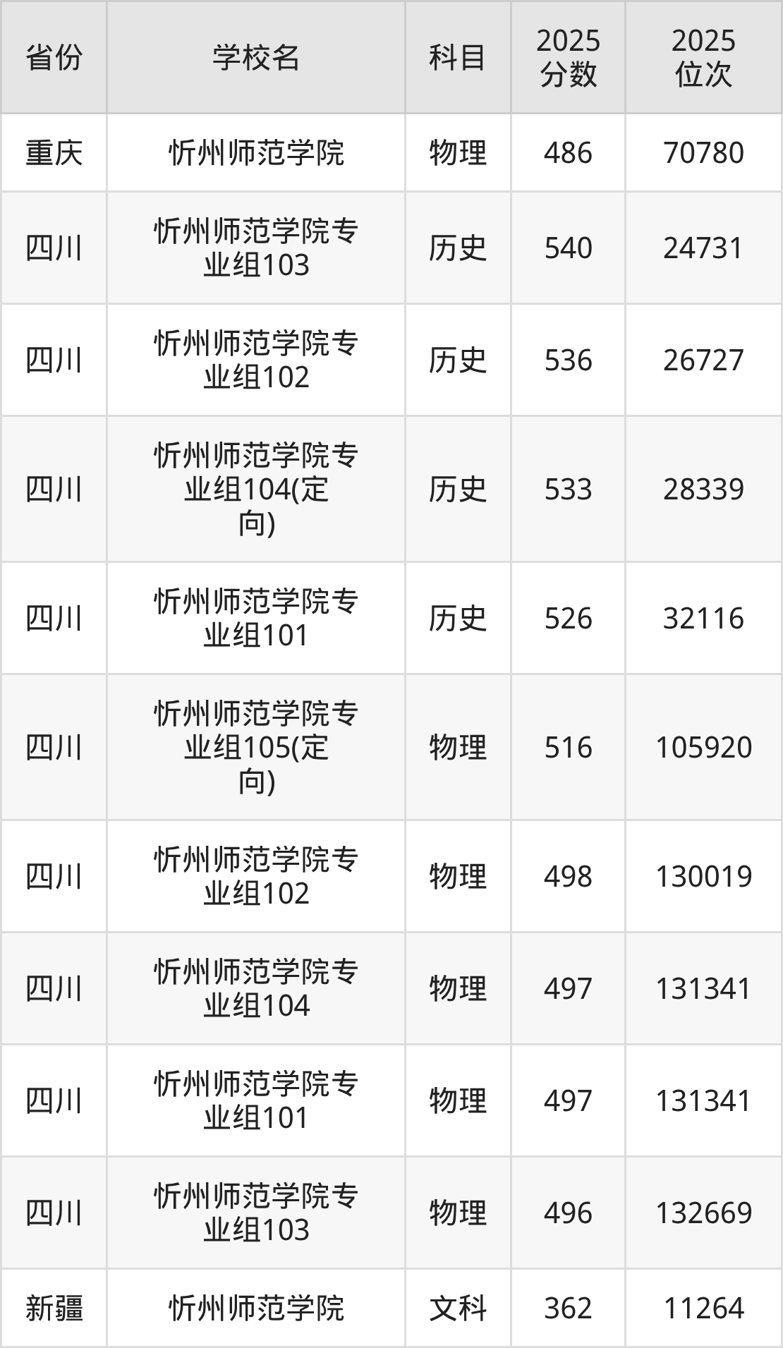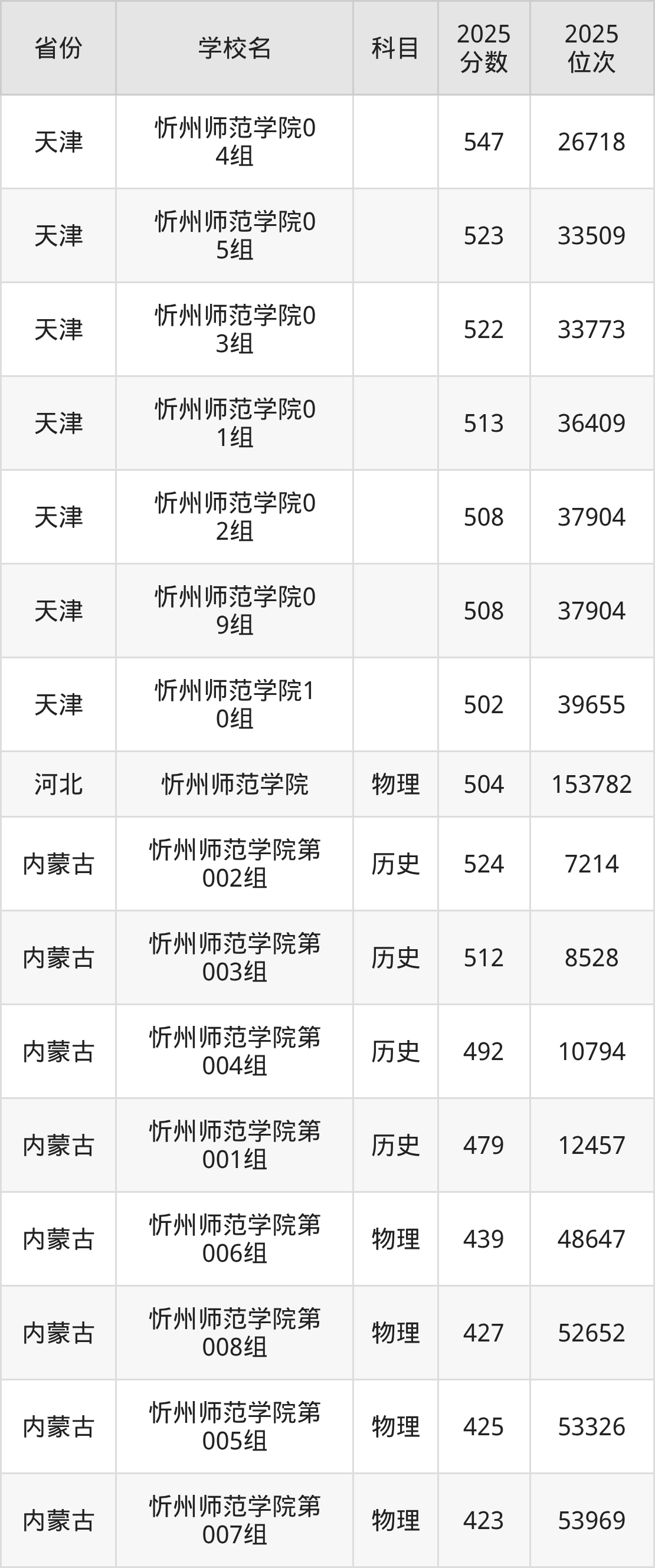 下面是忻州师范学院2025年录取分数线各省汇总,一起来了解下吧。
