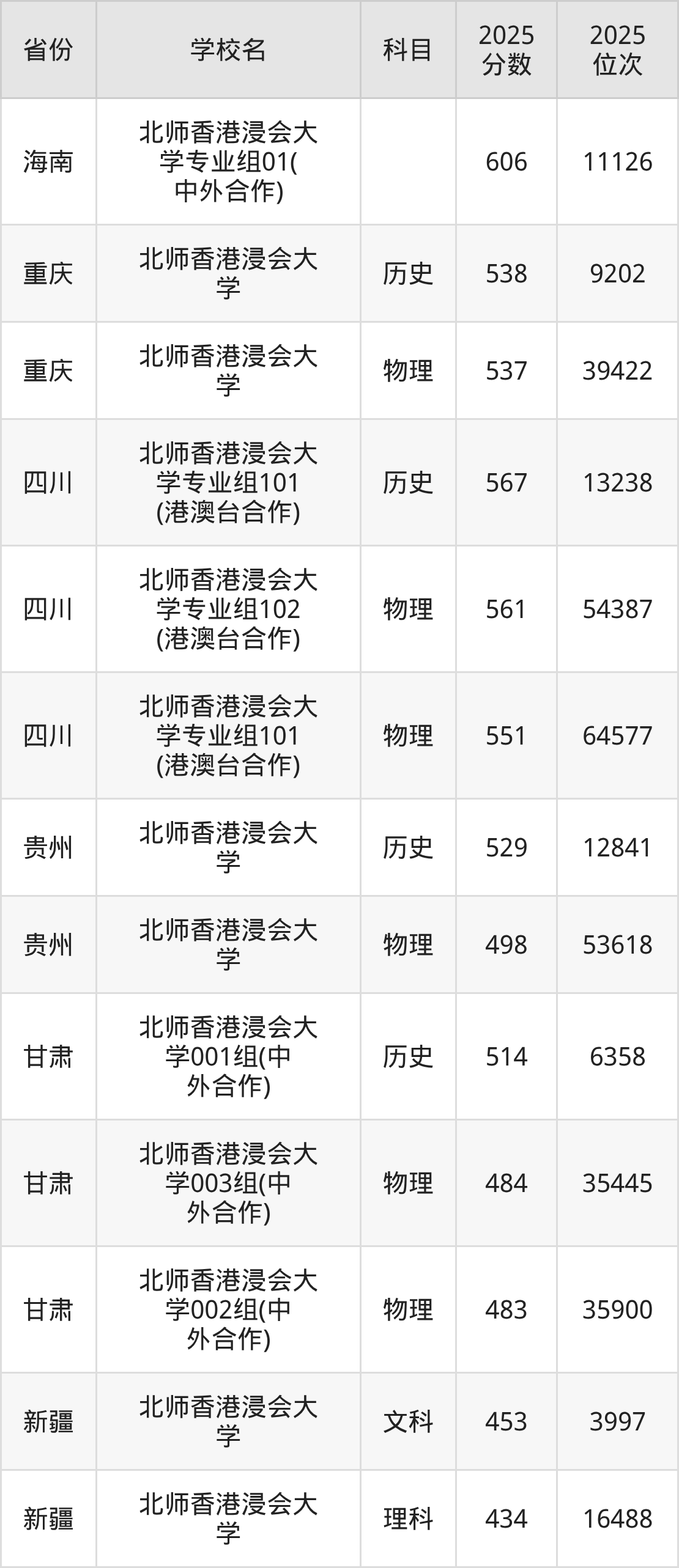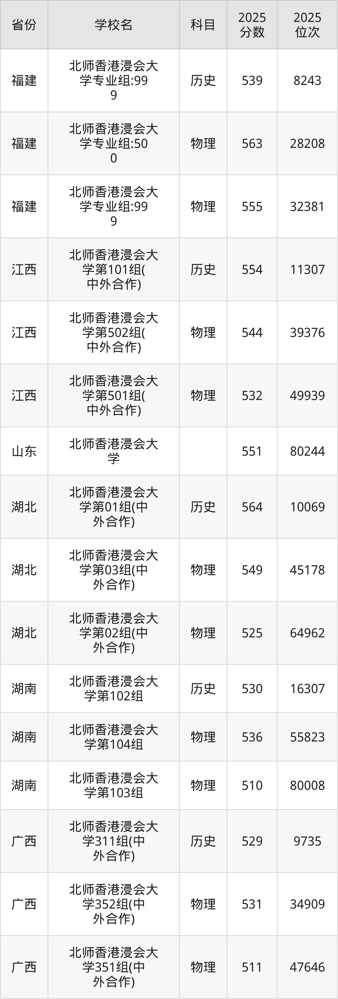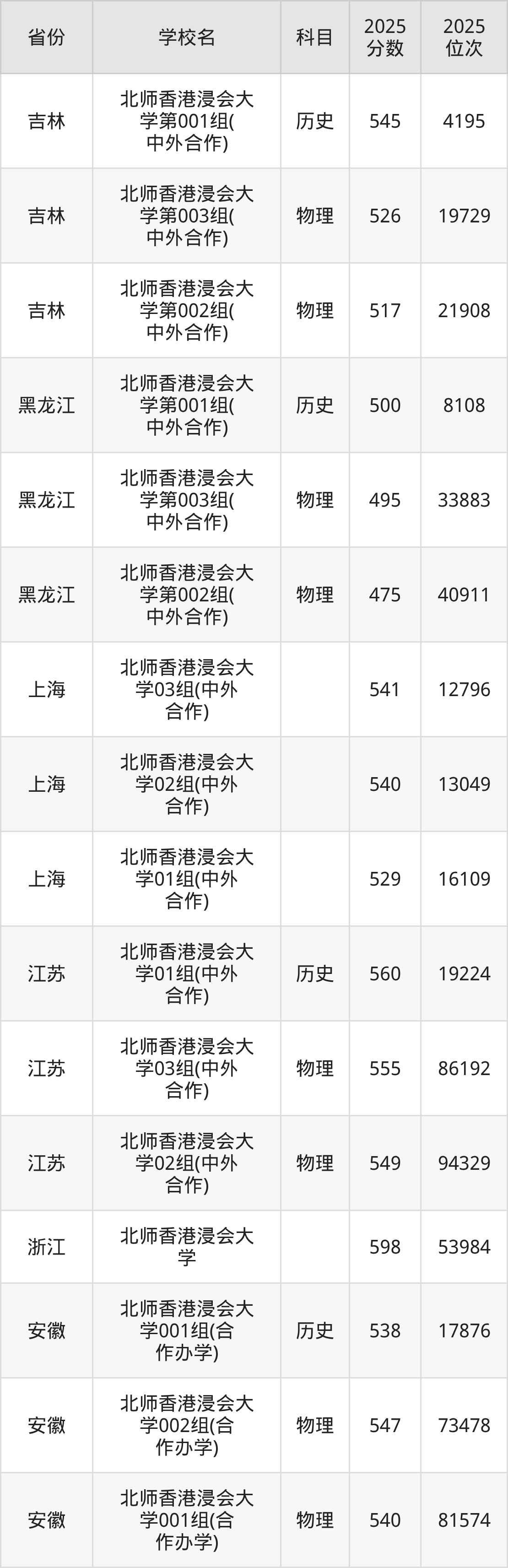 下面是北师香港浸会大学2025年录取分数线各省汇总,一起来了解下吧。
