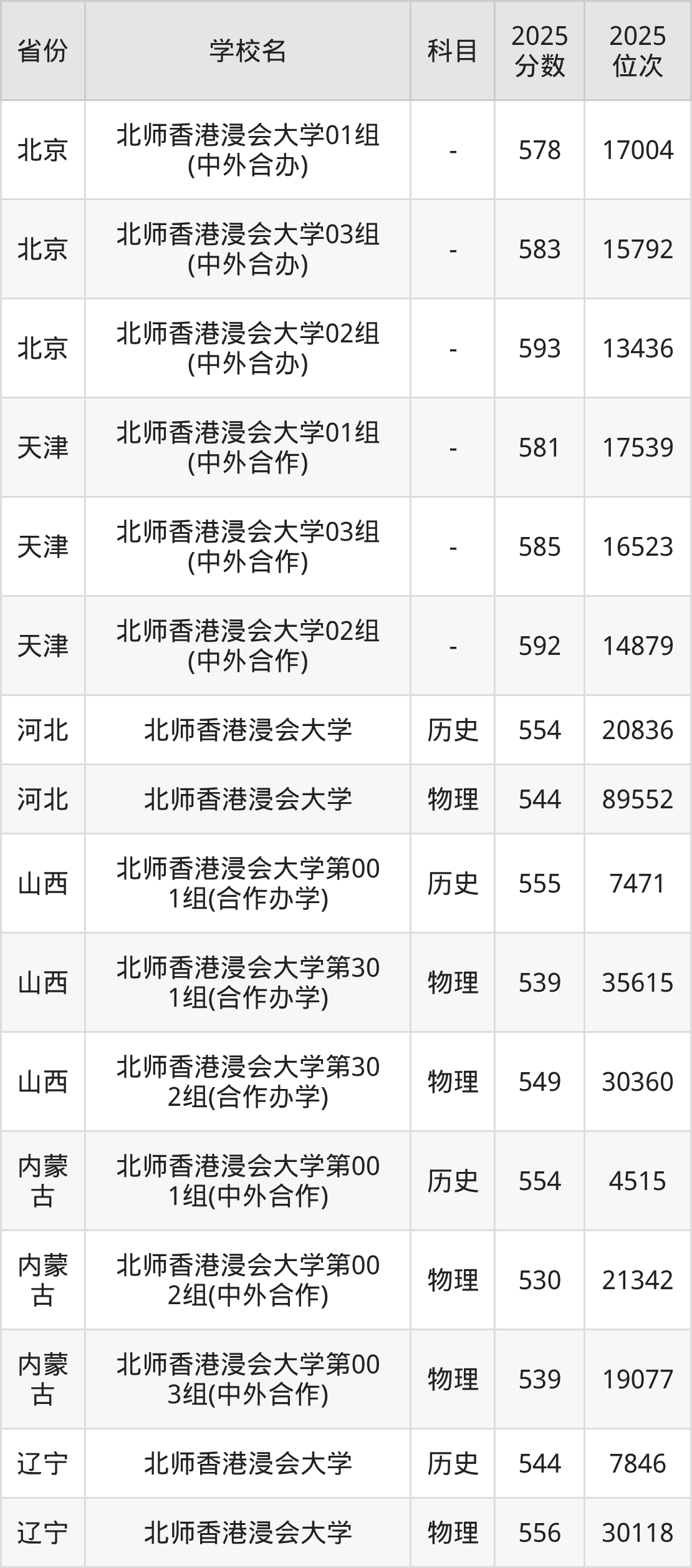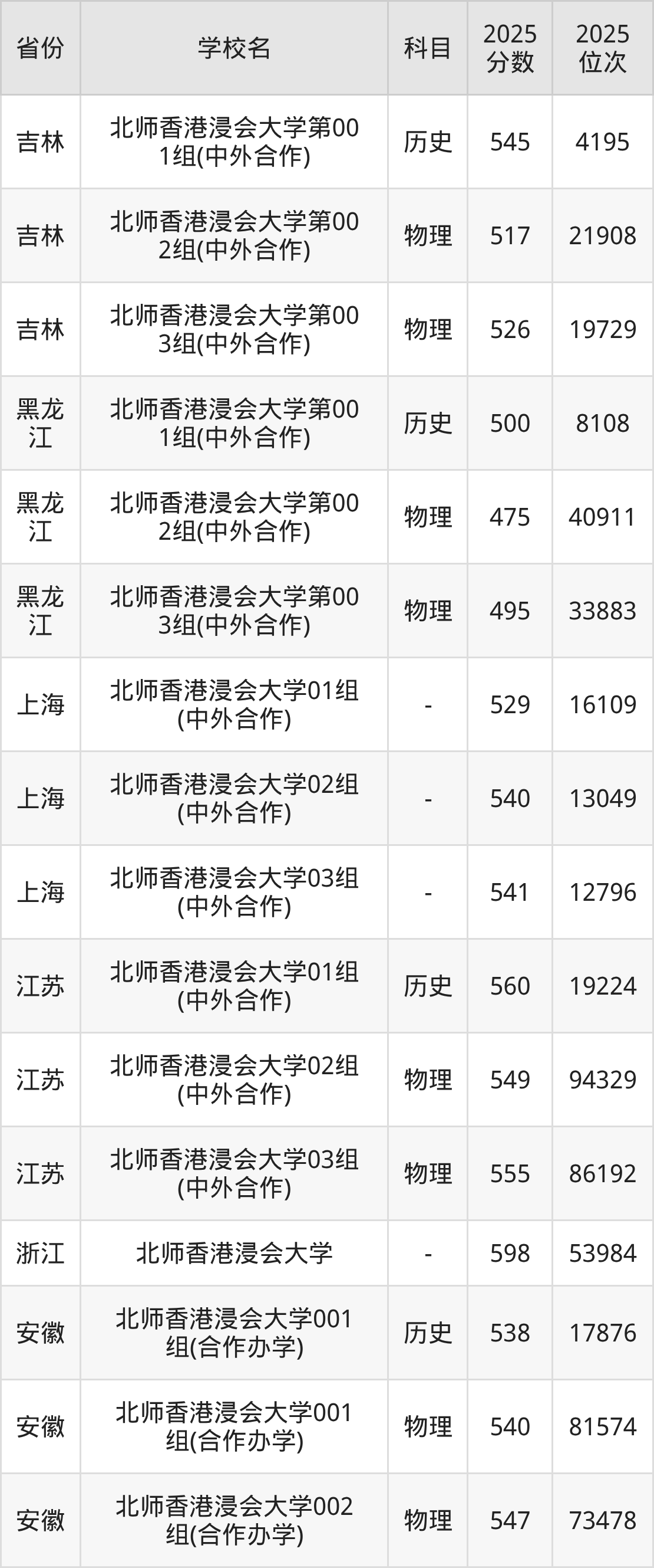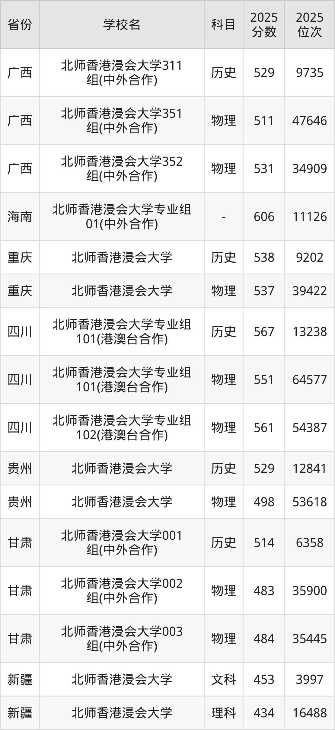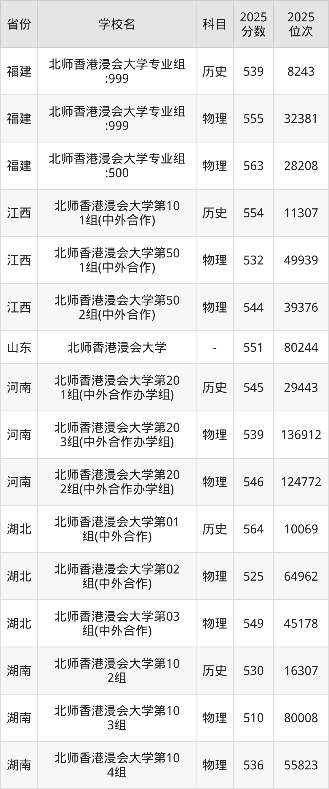 下面是北师香港浸会大学2025年录取分数线各省汇总,一起来了解下吧。