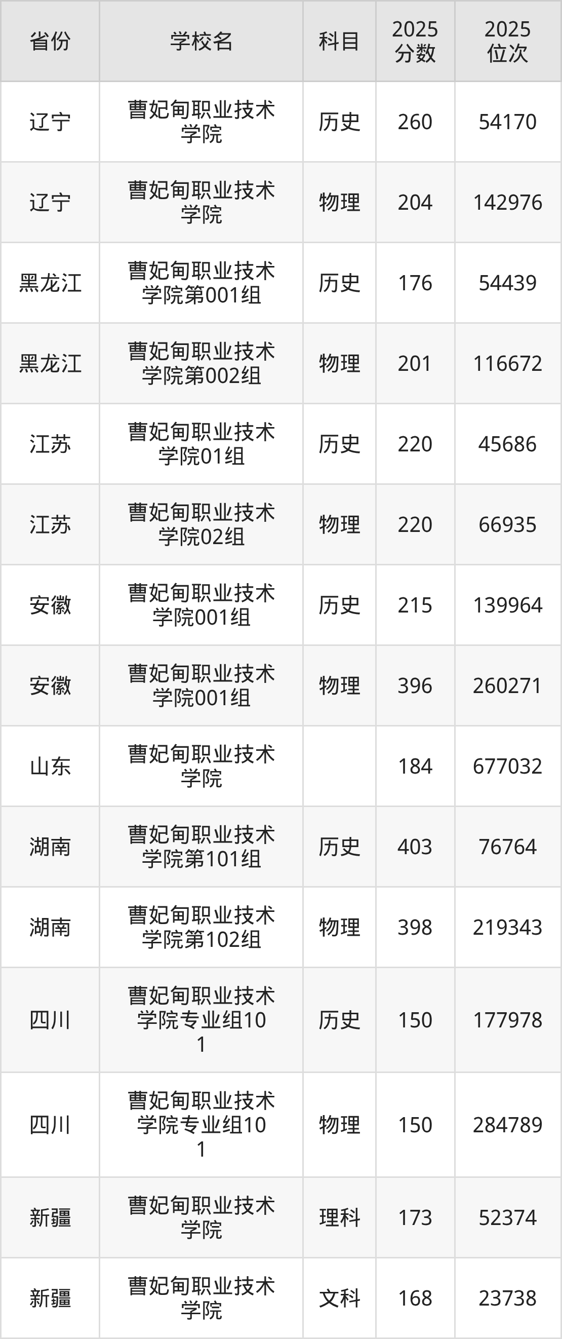 2025年曹妃甸职业技术学院历史类最低分235分(225554名)、物理类最低分201分(361425名)。
