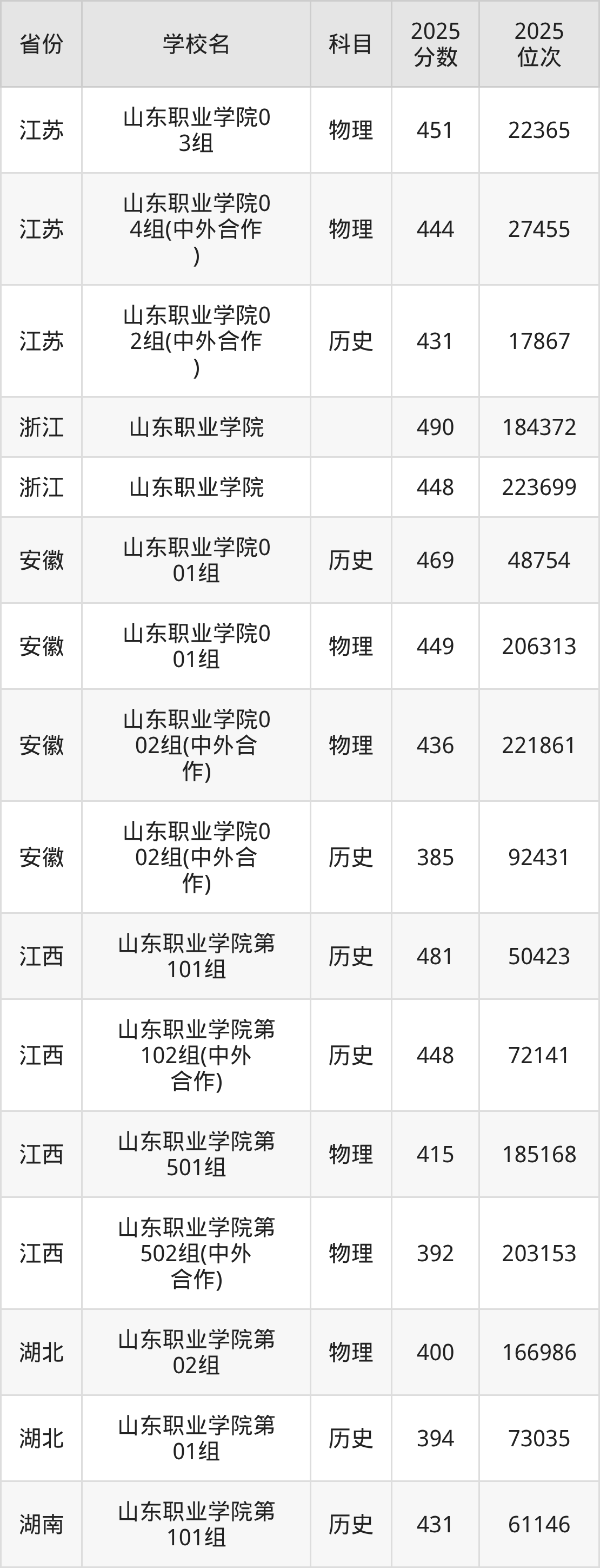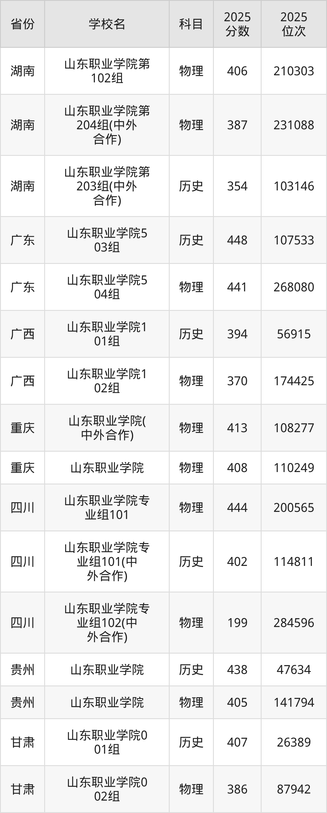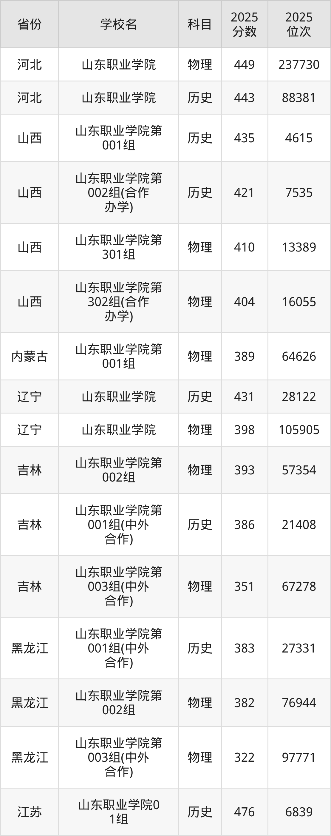 下面是山东职业学院2025年录取分数线各省汇总,一起来了解下吧。