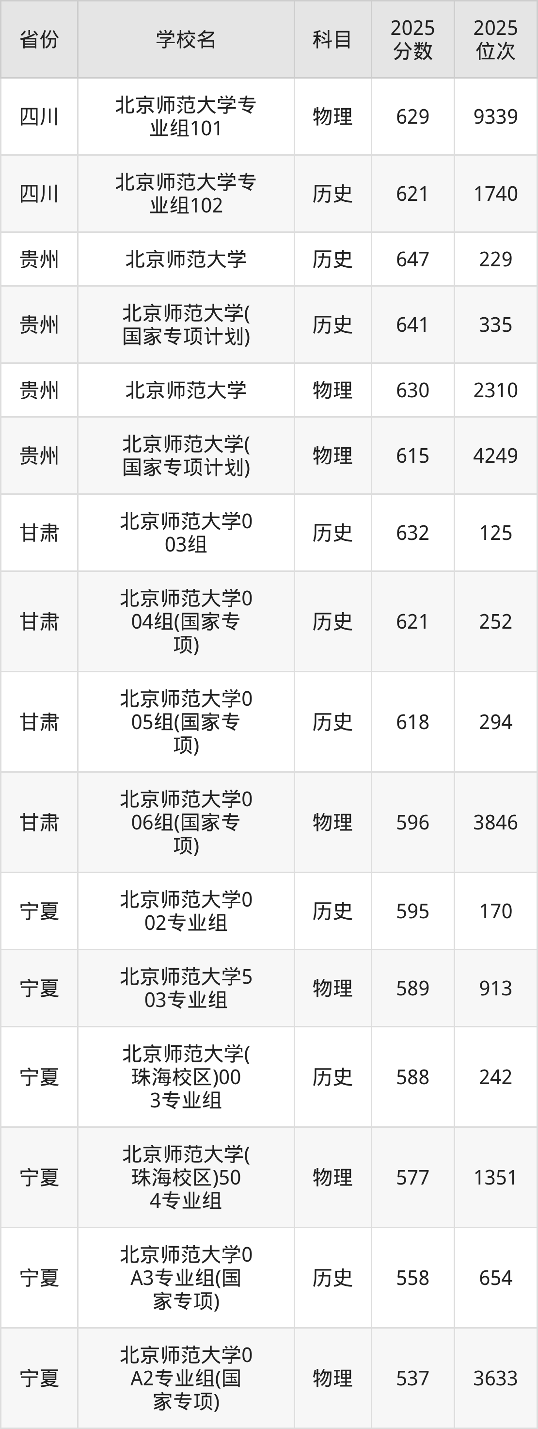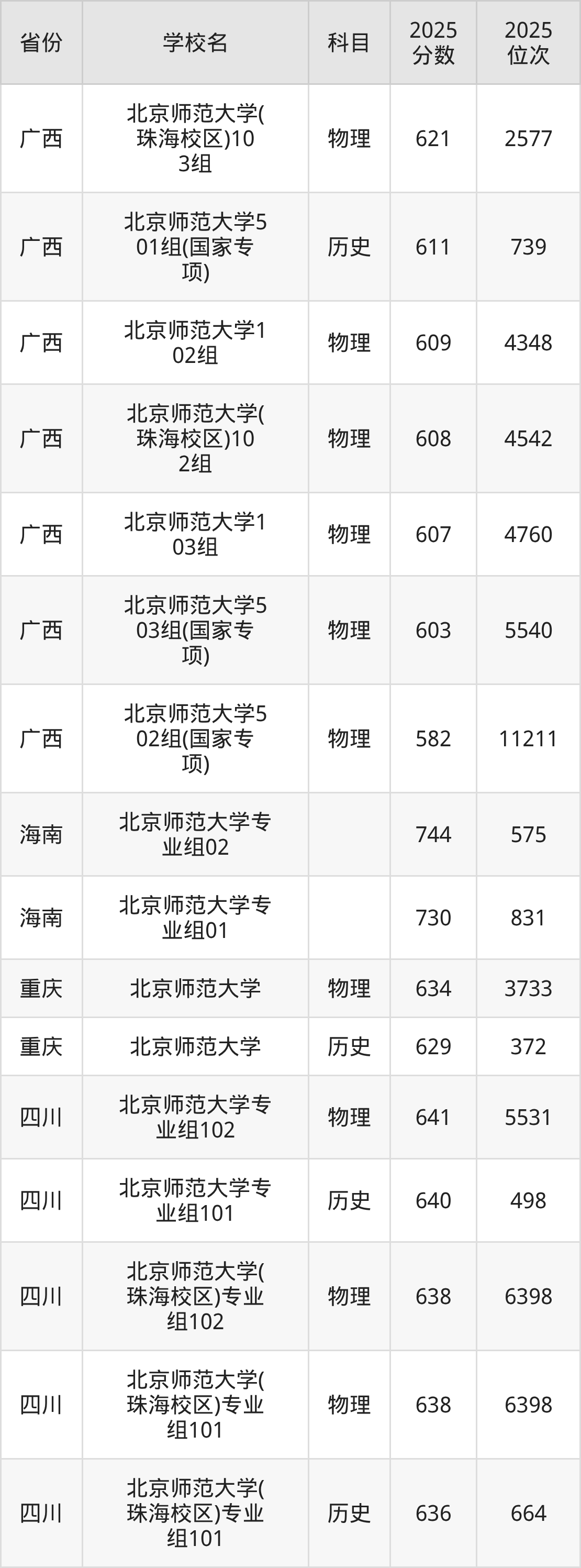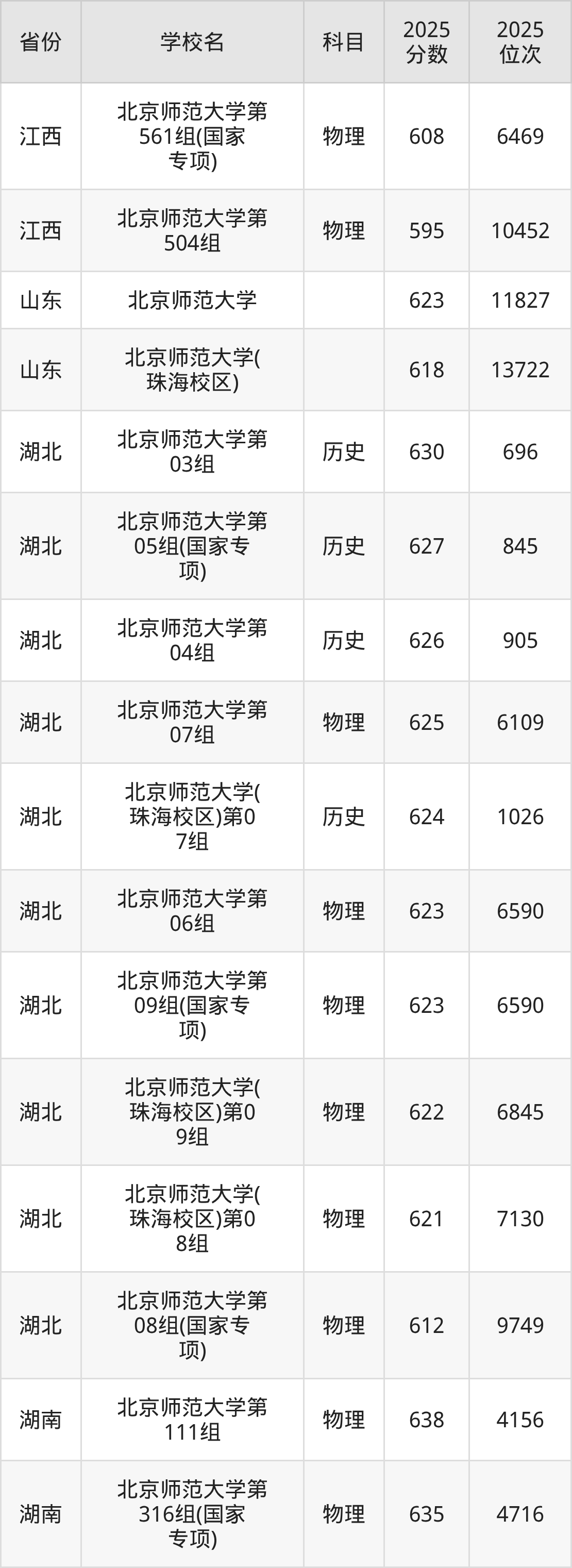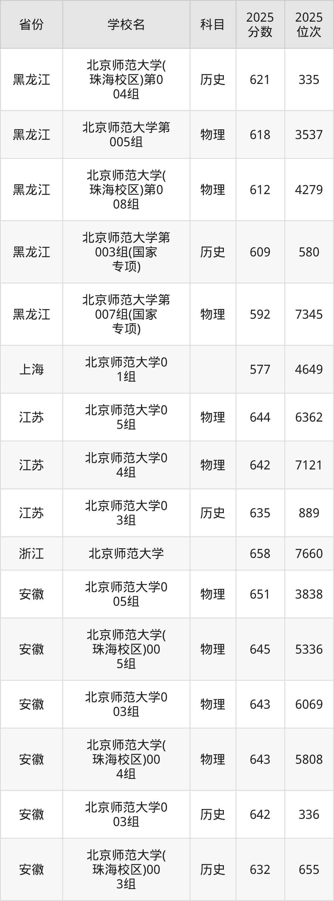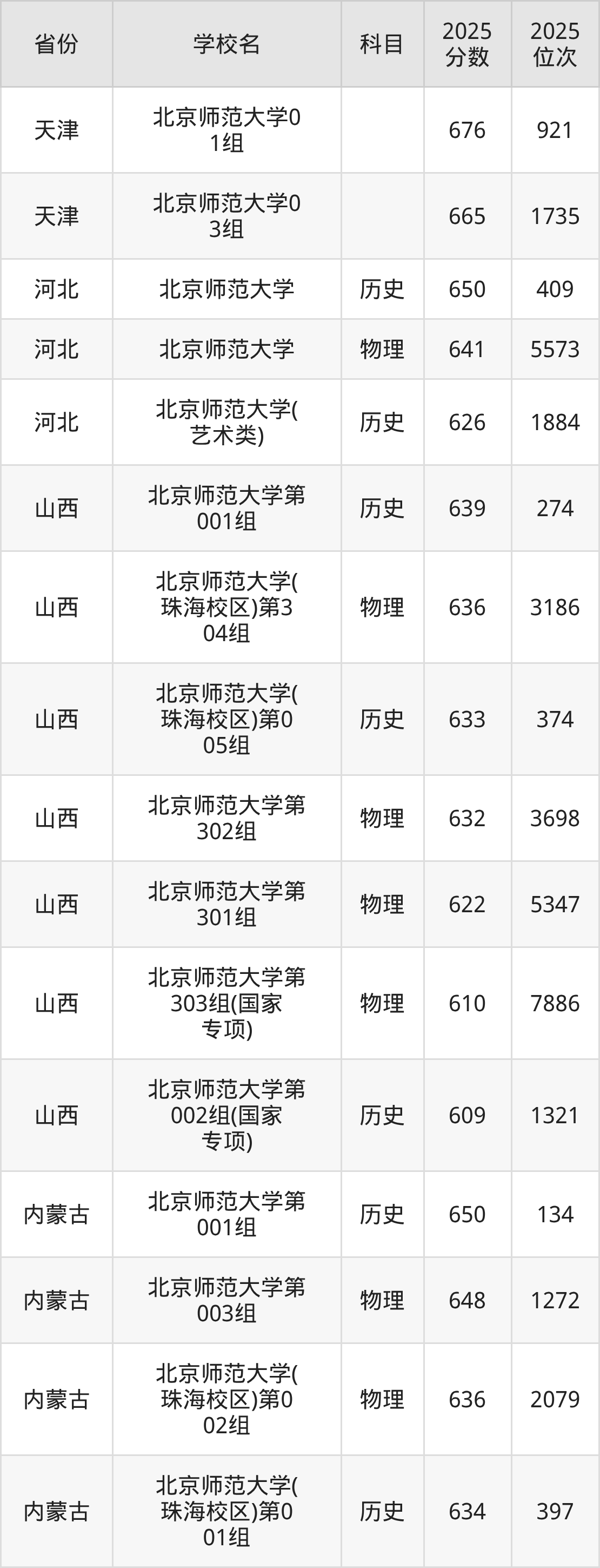 下面是北京师范大学2025年录取分数线各省汇总,一起来了解下吧。