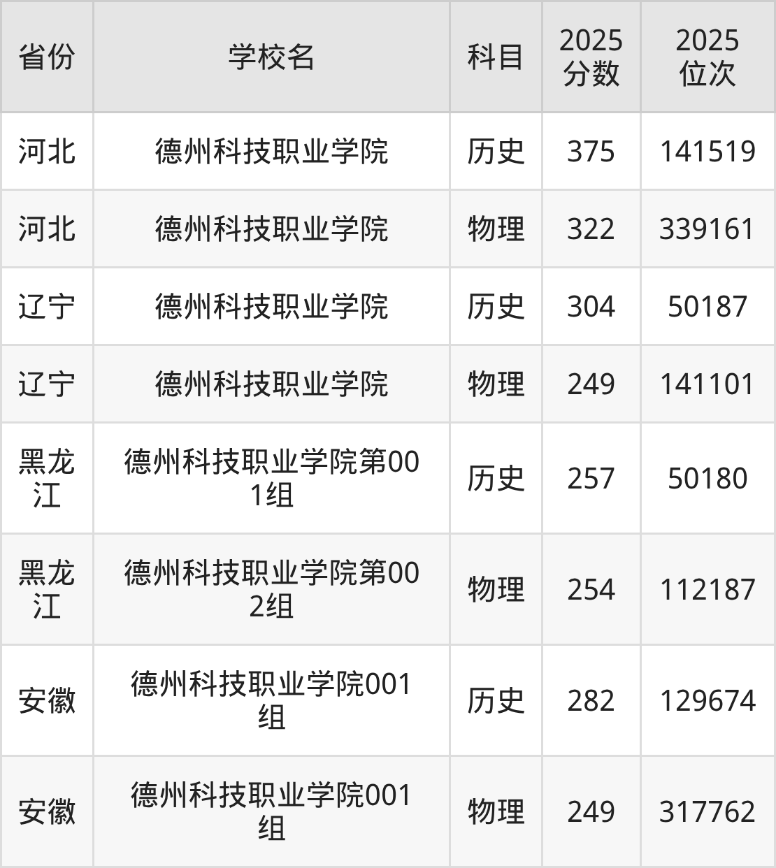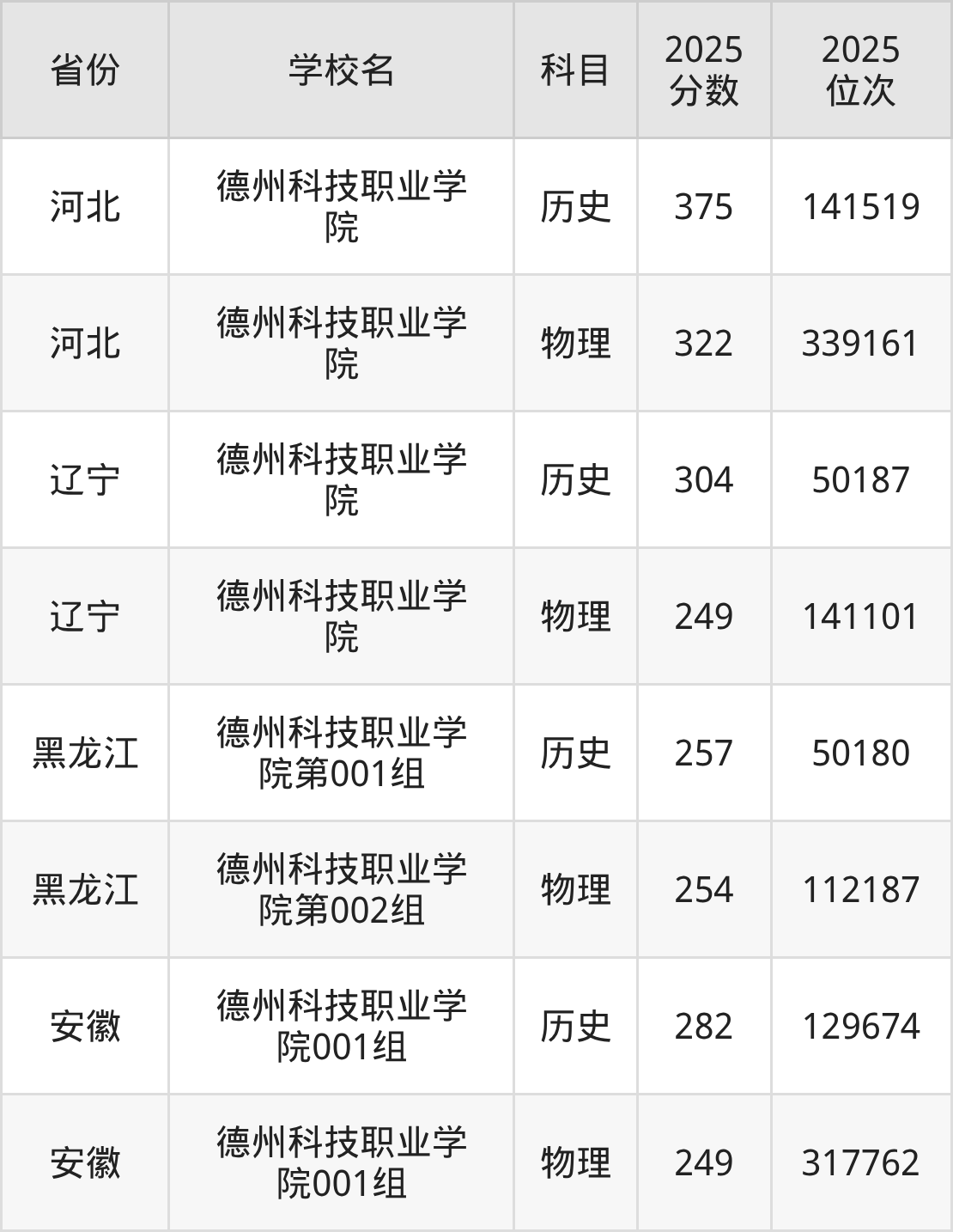 下面是德州科技职业学院2025年录取分数线各省汇总,一起来了解下吧。