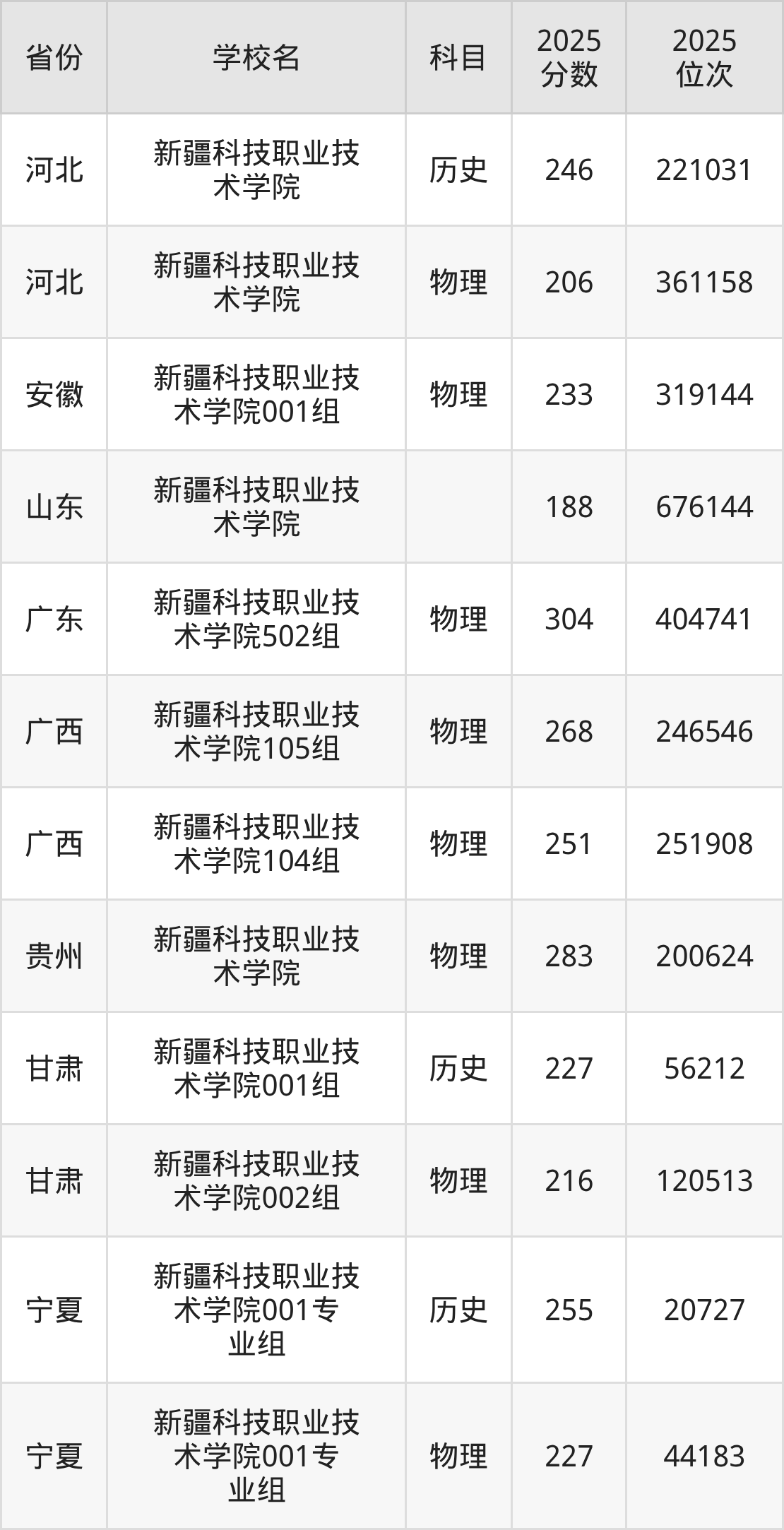 下面是新疆科技职业技术学院2025年录取分数线各省汇总,一起来了解下吧。