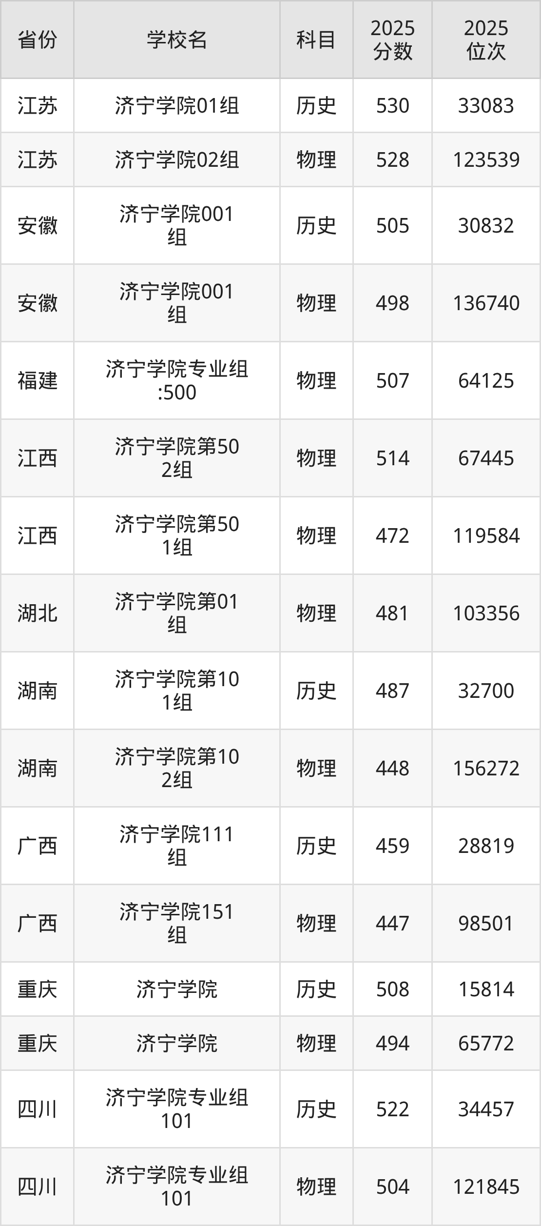 下面是济宁学院2025年录取分数线各省汇总,一起来了解下吧。