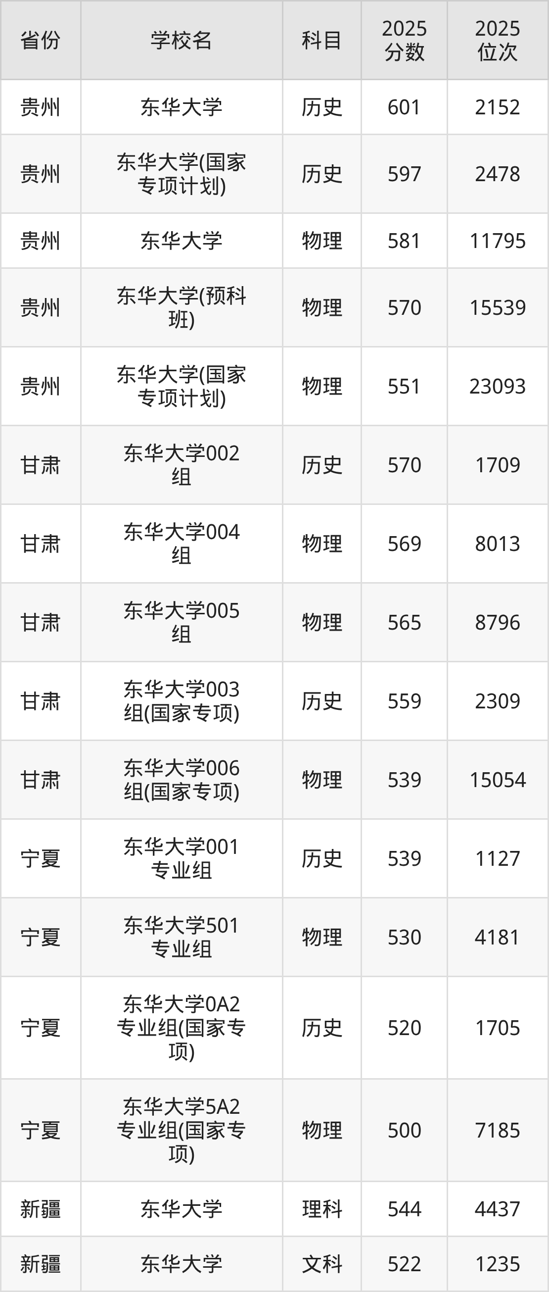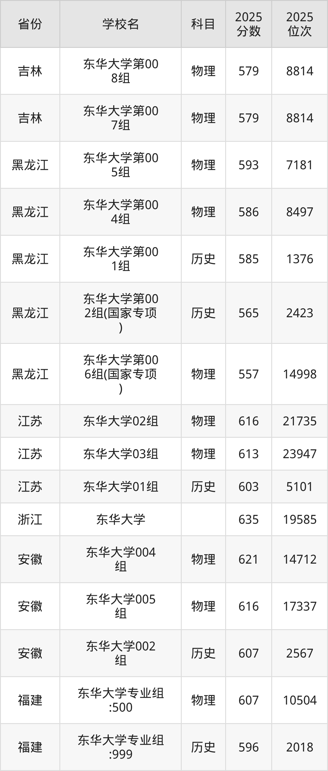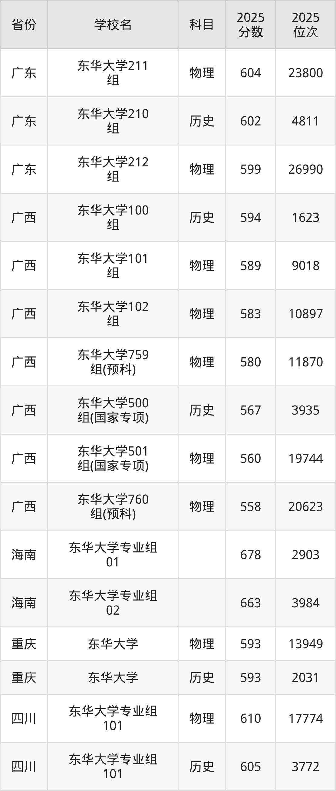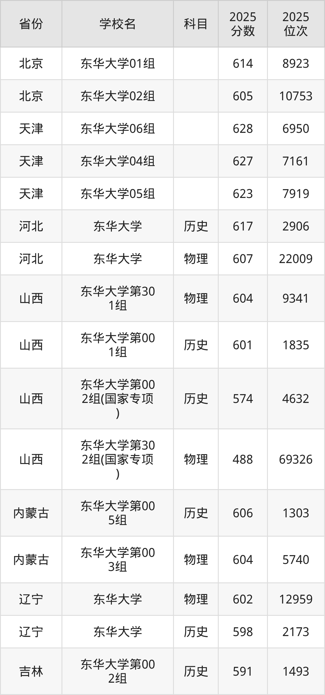 2026年东华大学录取分数线预计在580分及以上,在各省录取最低分存在一定差异,如:2025年东华大学在黑龙江录取最低历史类565分、物理类557分,在江苏录取最低历史类603分、物理类613分,在宁夏录取最低历史类520分、物理类500分。