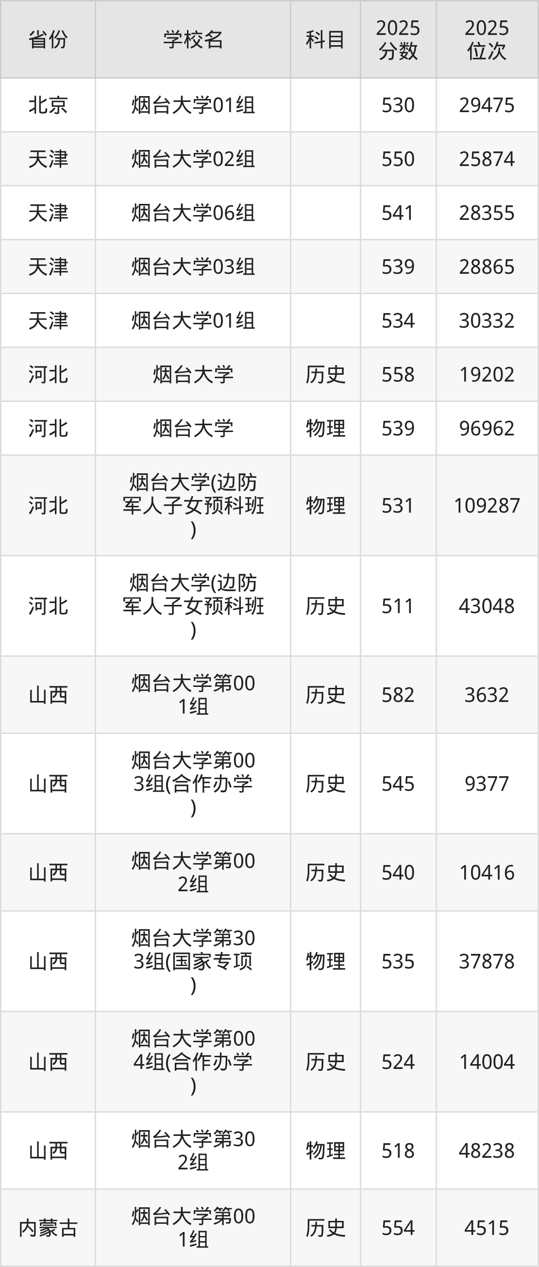 下面是烟台大学2025年录取分数线各省汇总,一起来了解下吧。