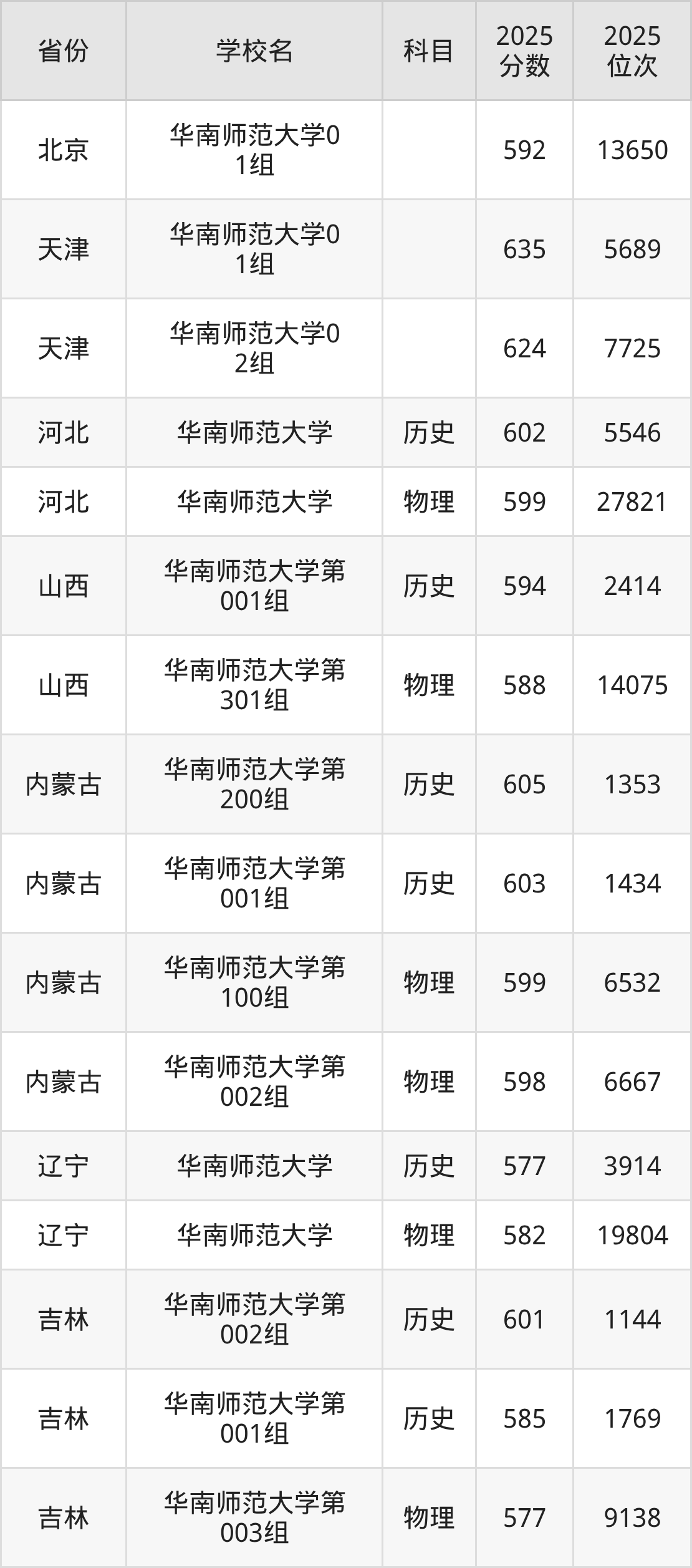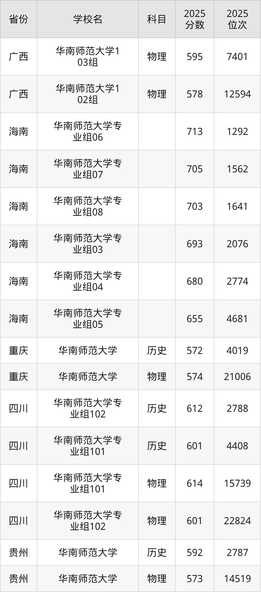 | 华南师范大学2 49组(地方专 项) | 物理 | 600 | 26829 |