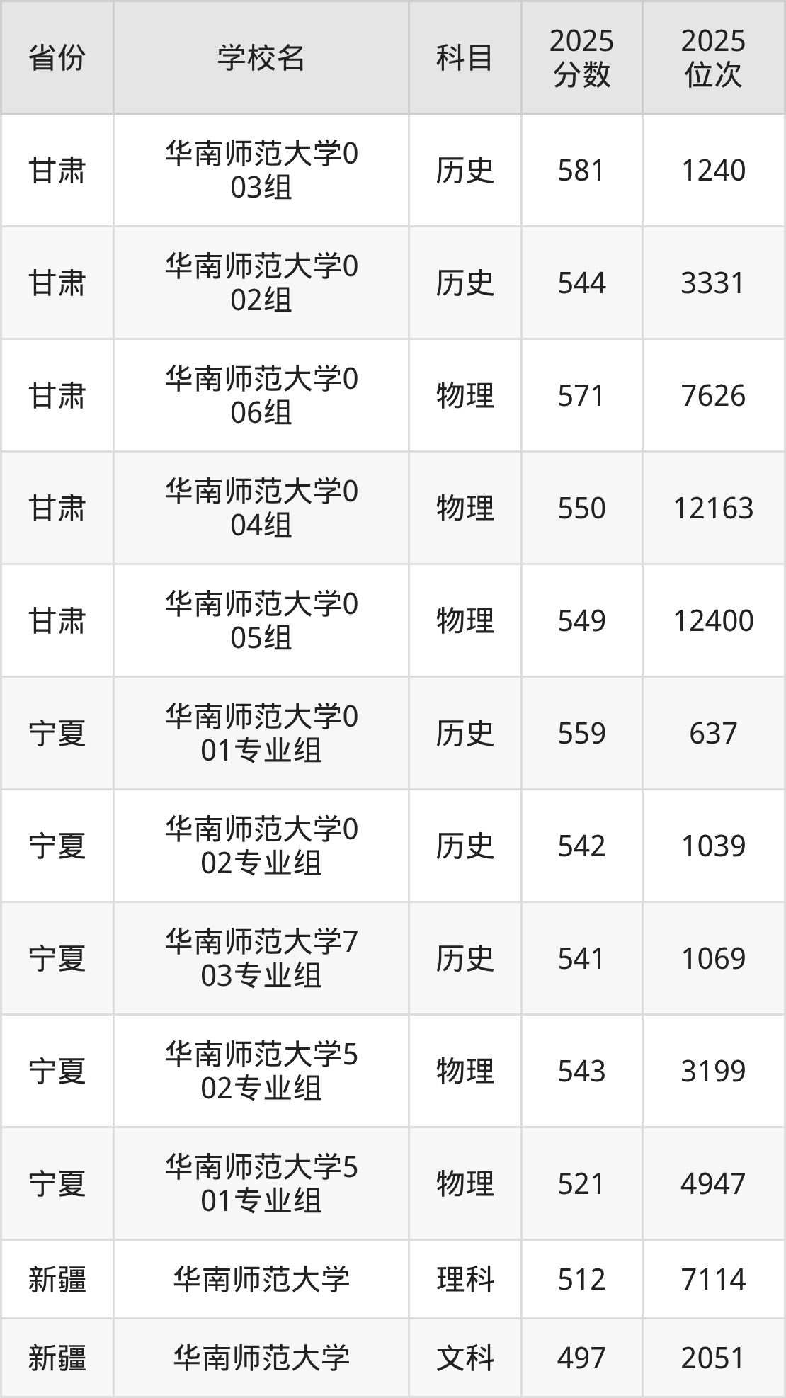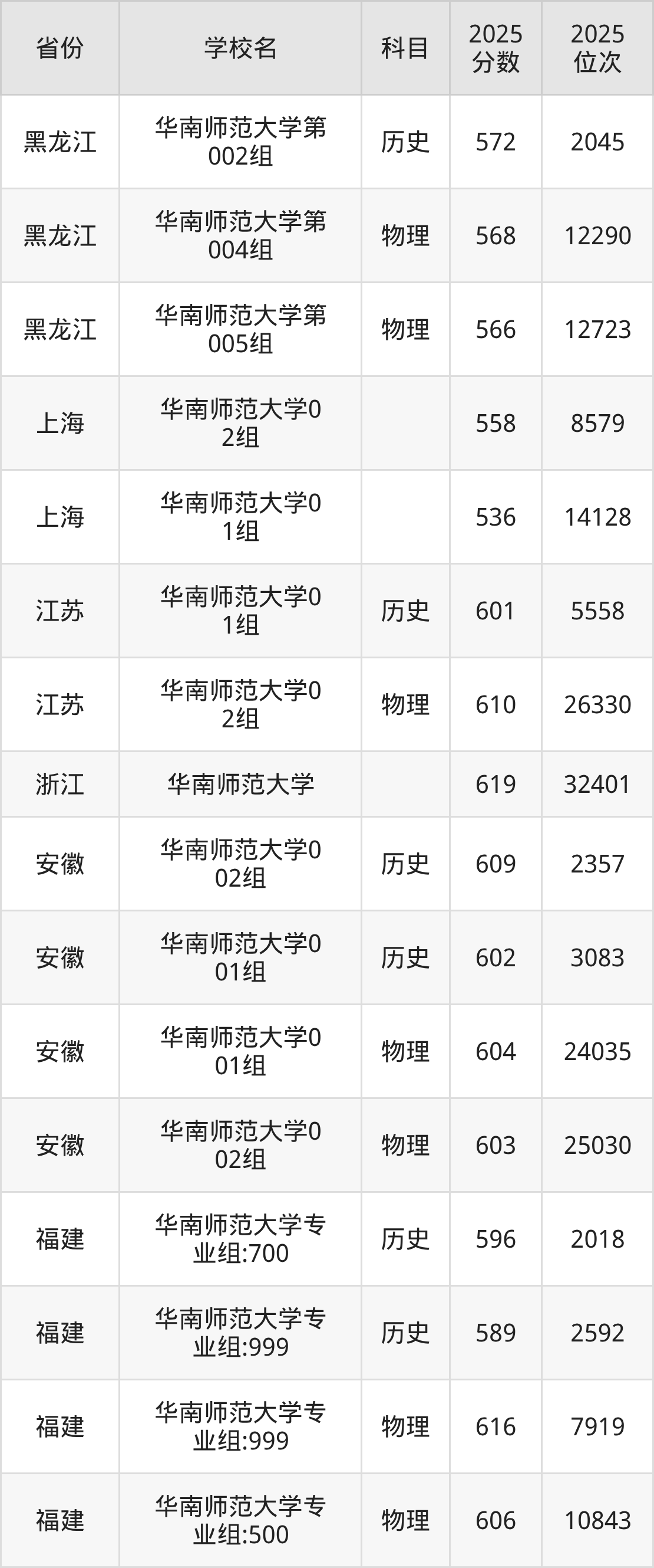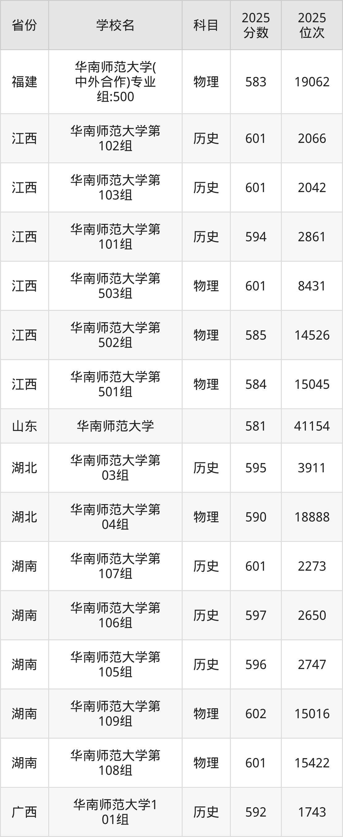 | 华南师范大学2 21组 | 物理 | 610 | 19563 |
