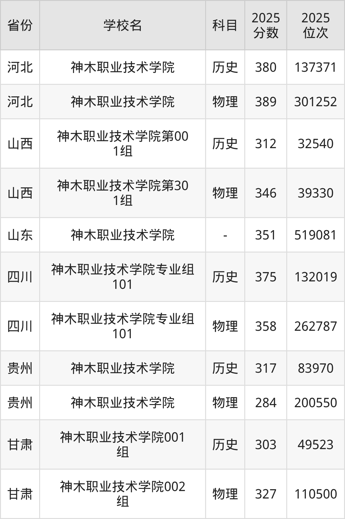 下面是神木职业技术学院2025年录取分数线各省汇总,一起来了解下吧。