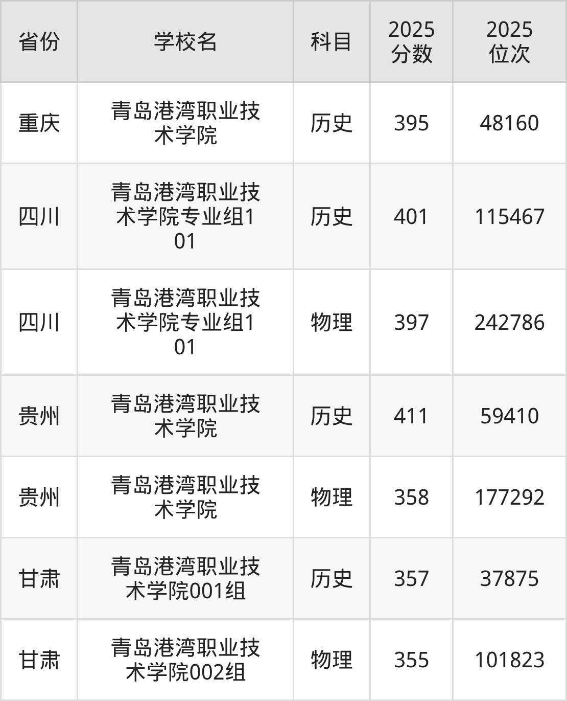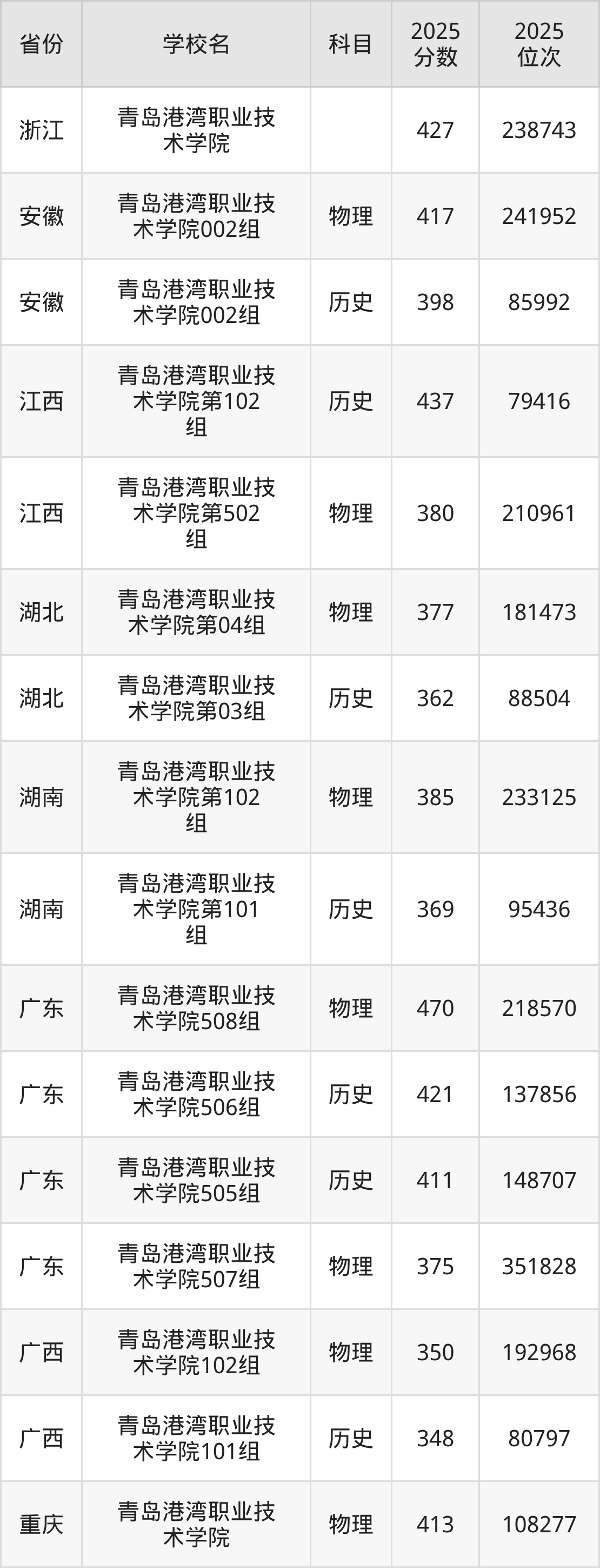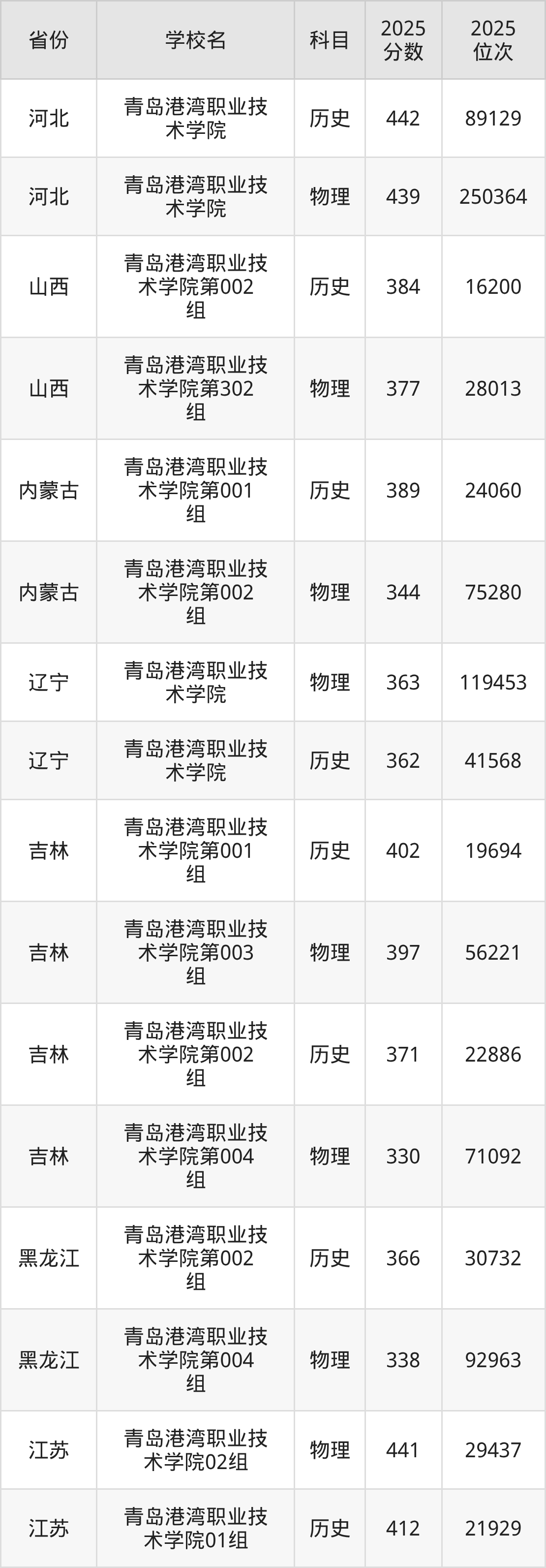 下面是青岛港湾职业技术学院2025年录取分数线各省汇总,一起来了解下吧。