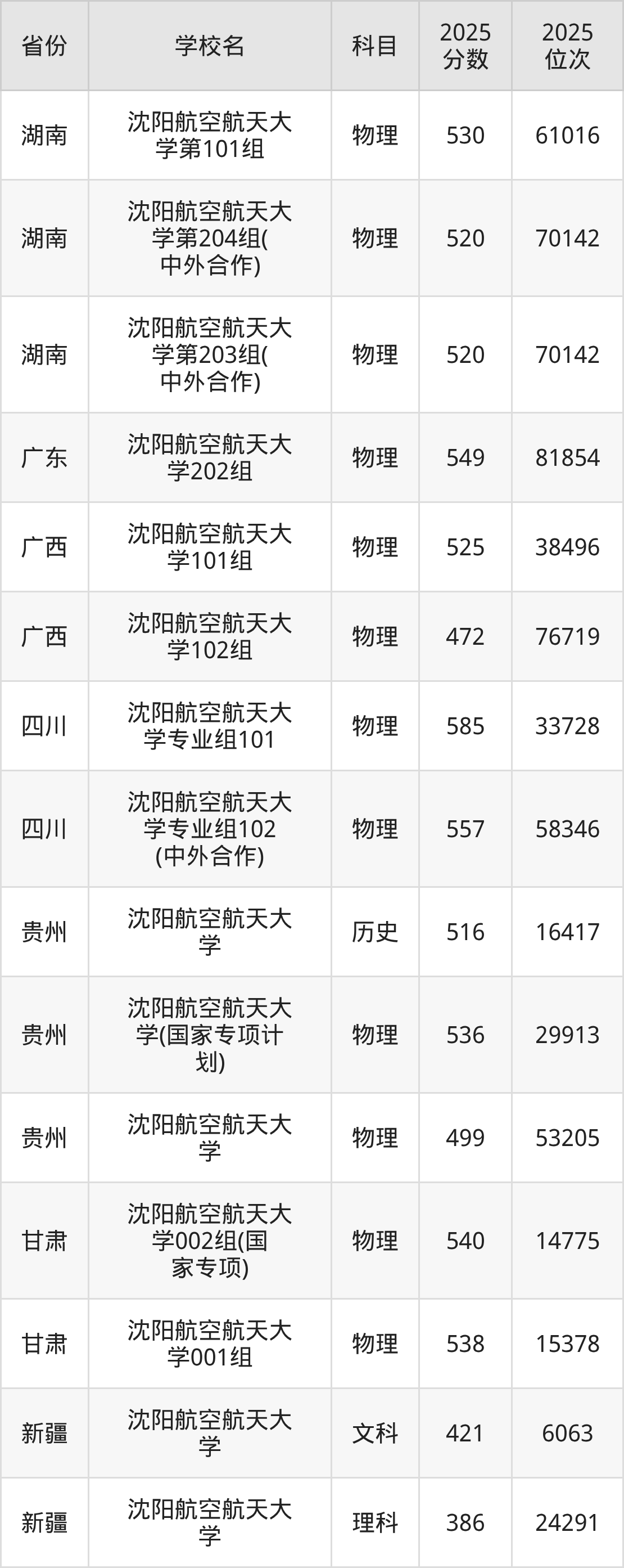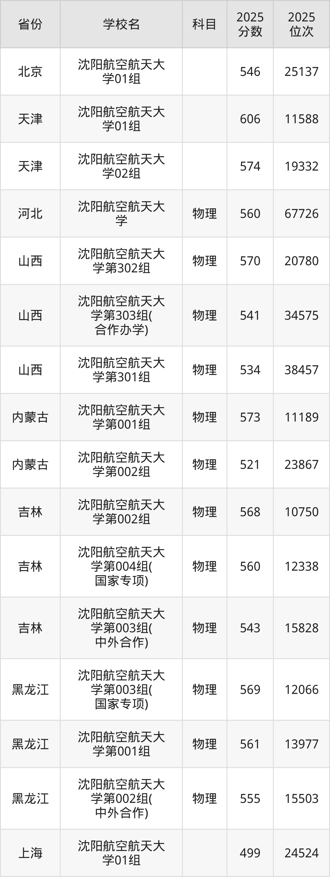 | 沈阳航空航天大 学 | 物理 | 498 | 57563 |