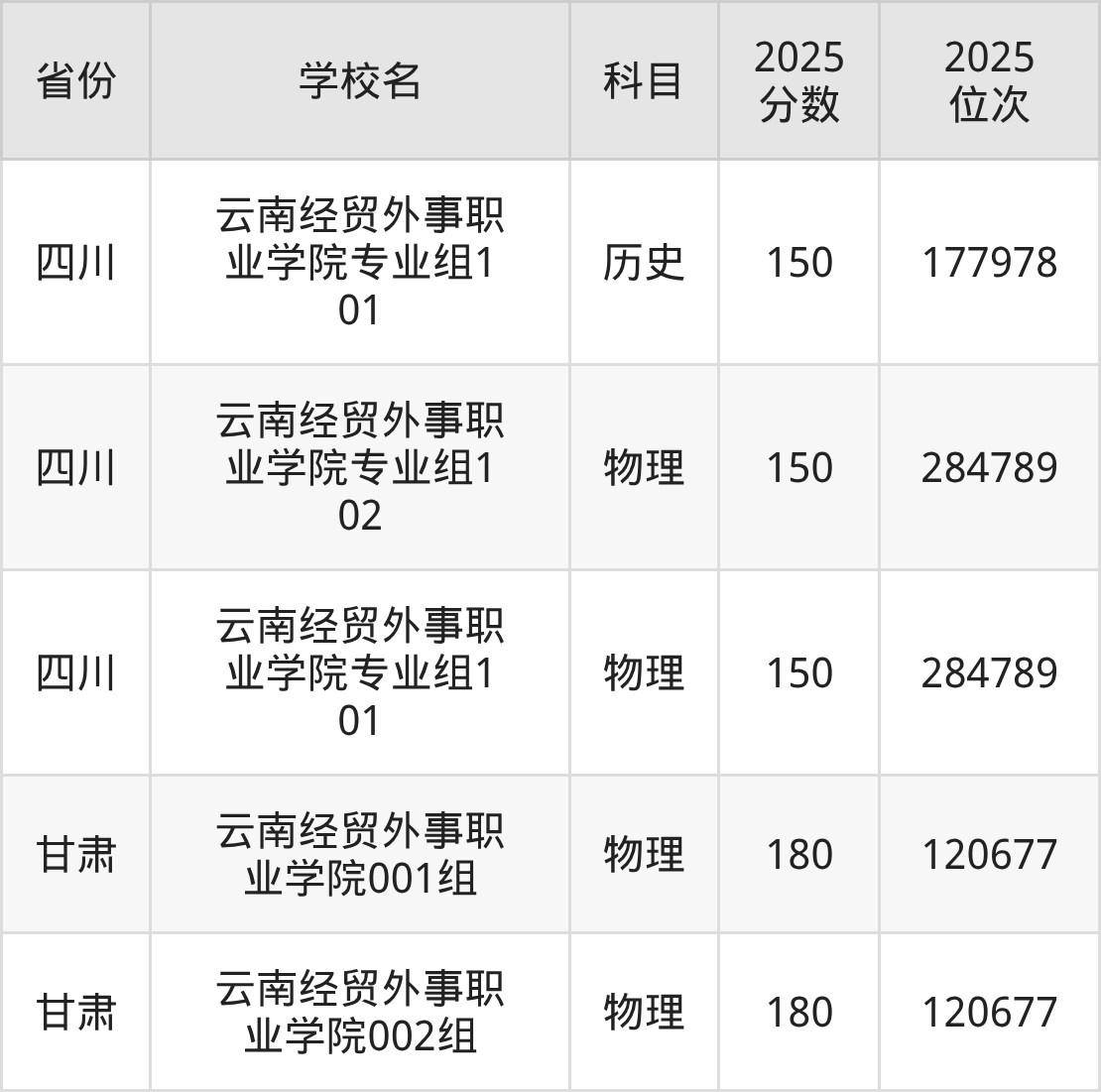 2025年云南经贸外事职业学院物理类最低分180分(139478名)。