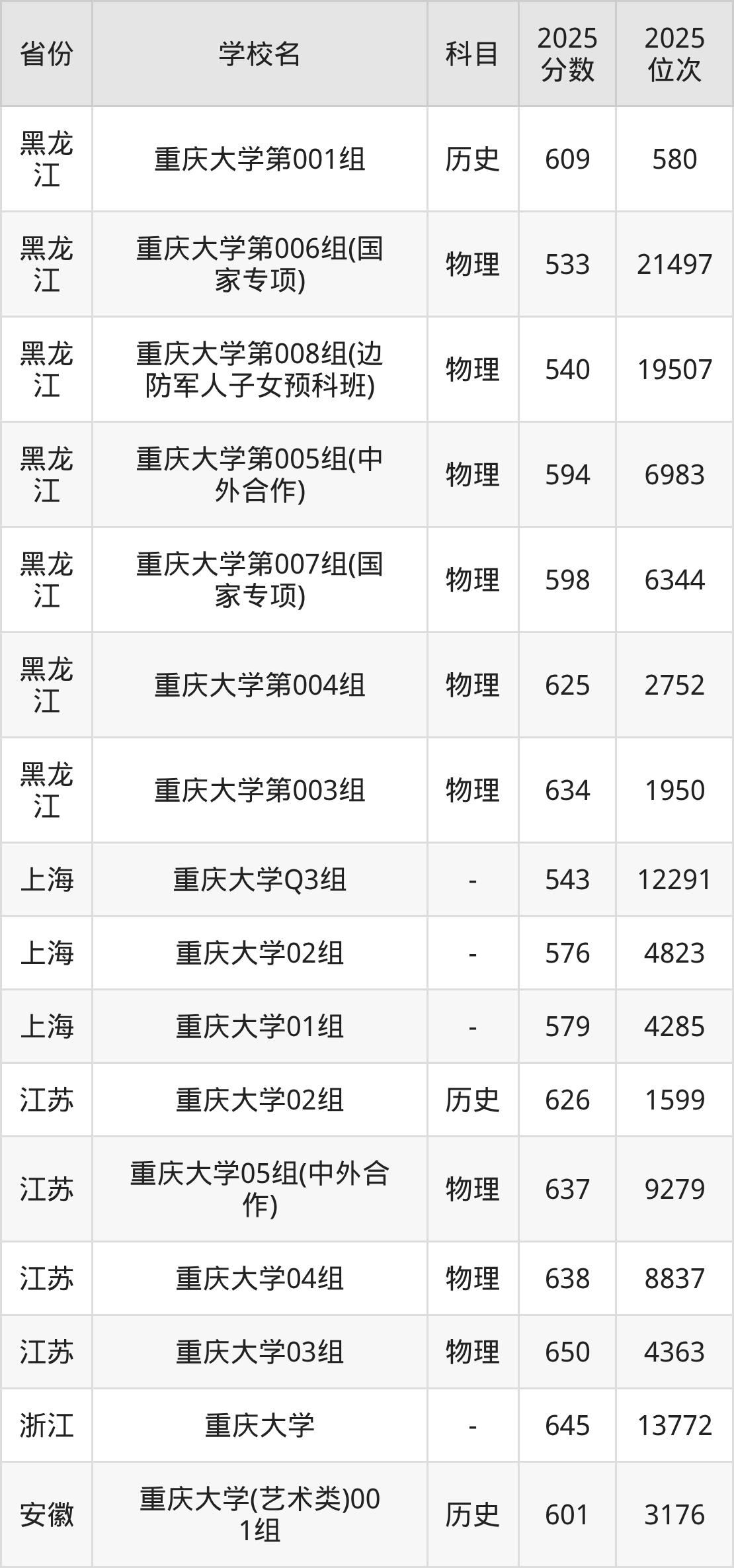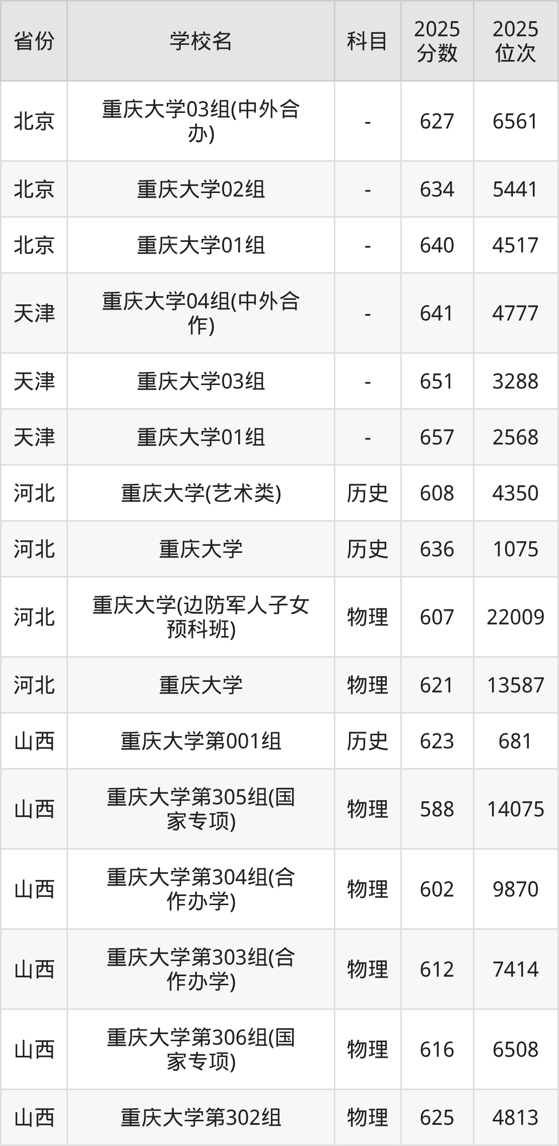 下面是重庆大学2025年录取分数线各省汇总,一起来了解下吧。