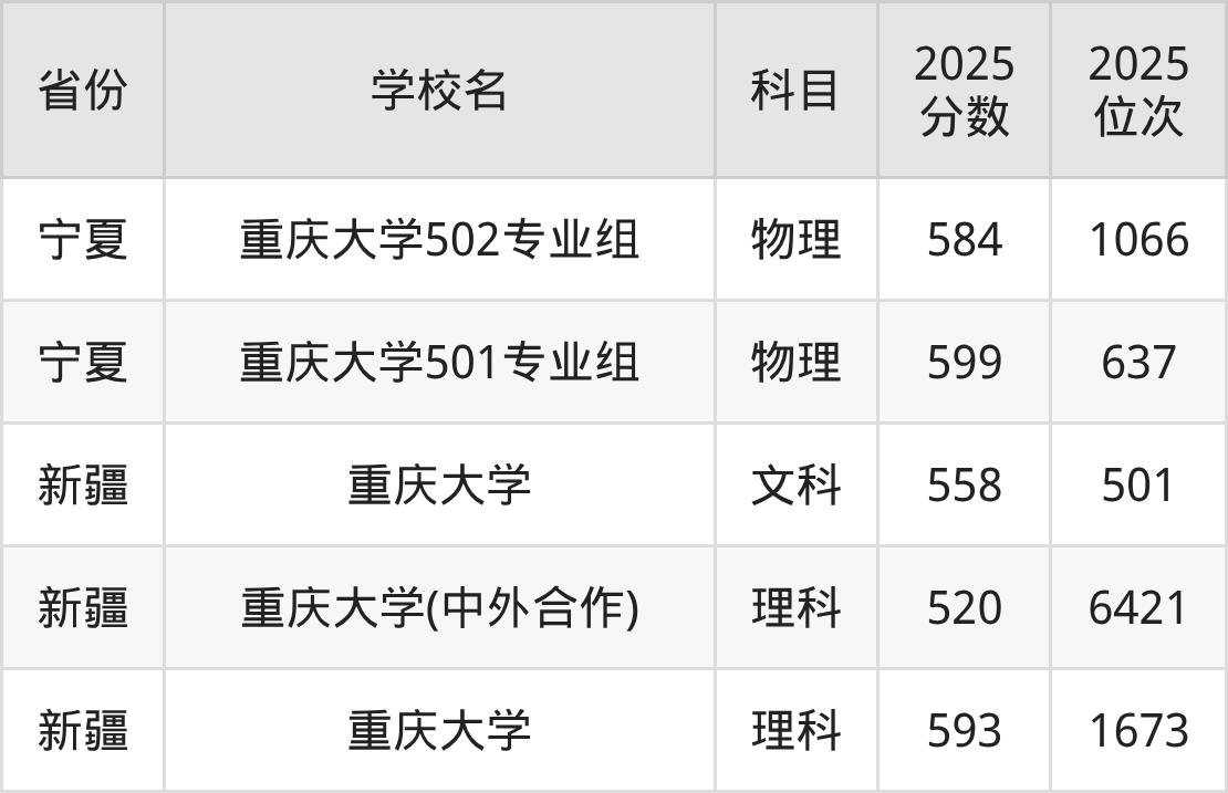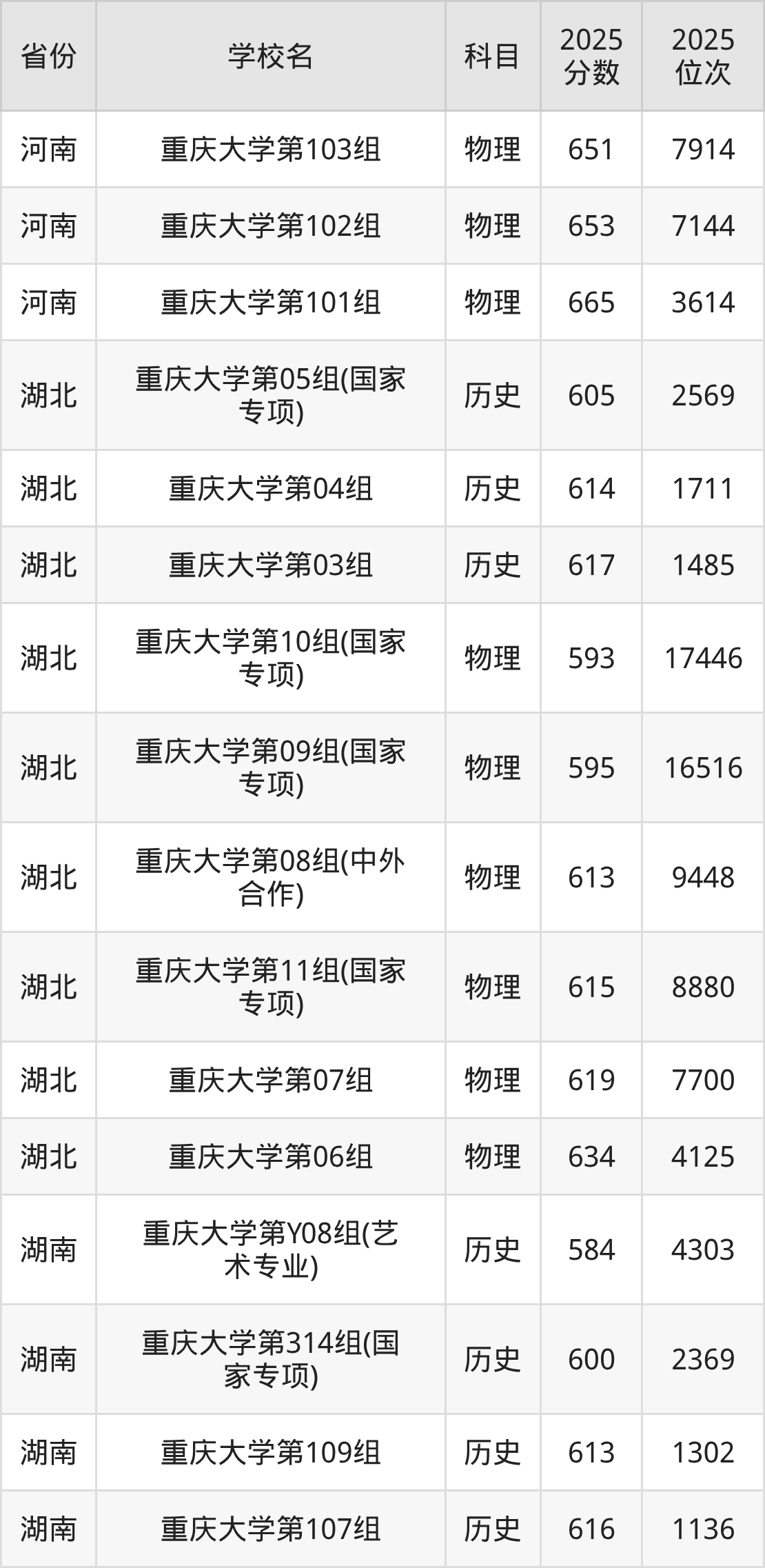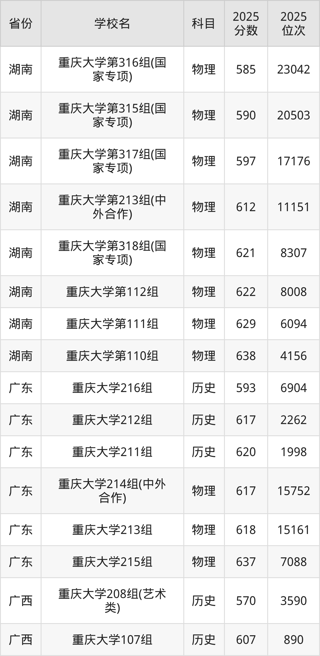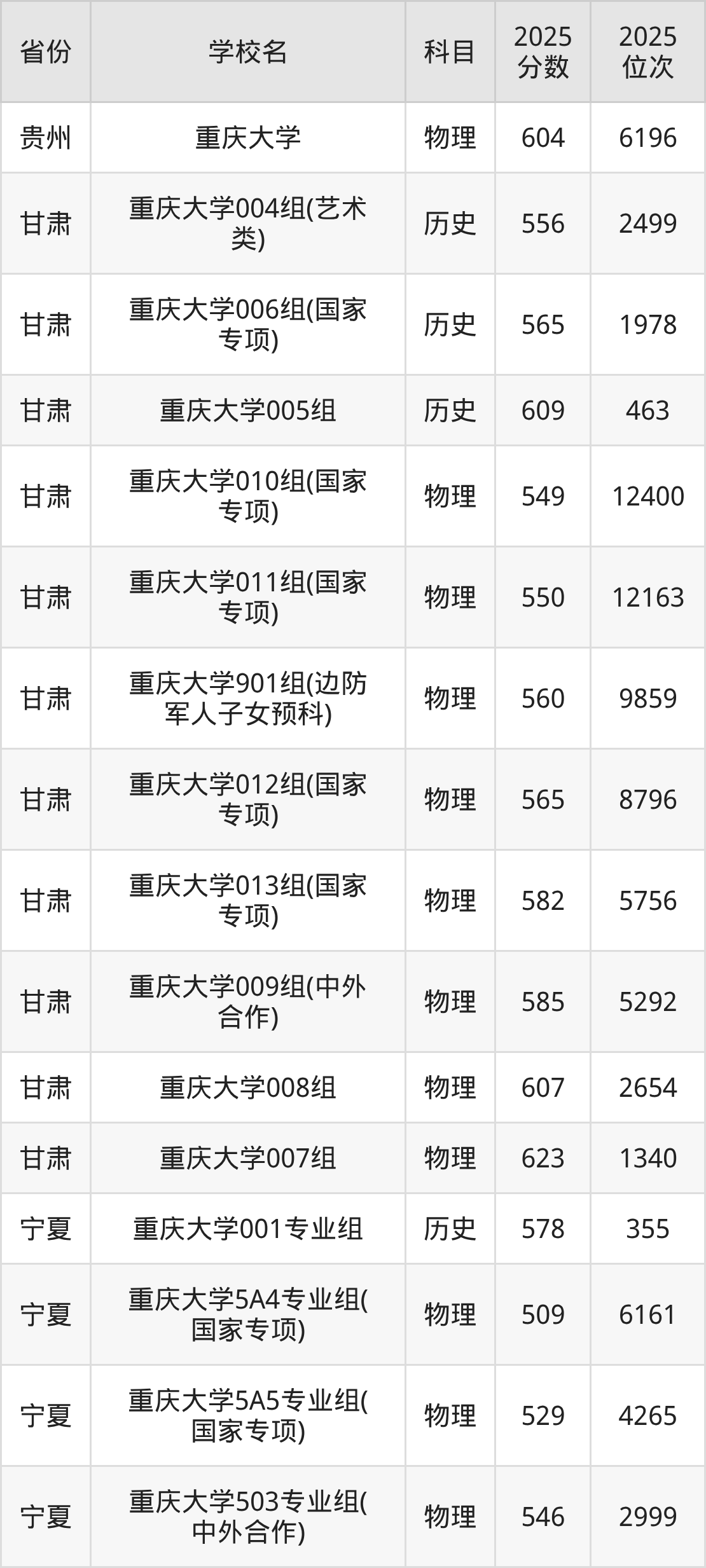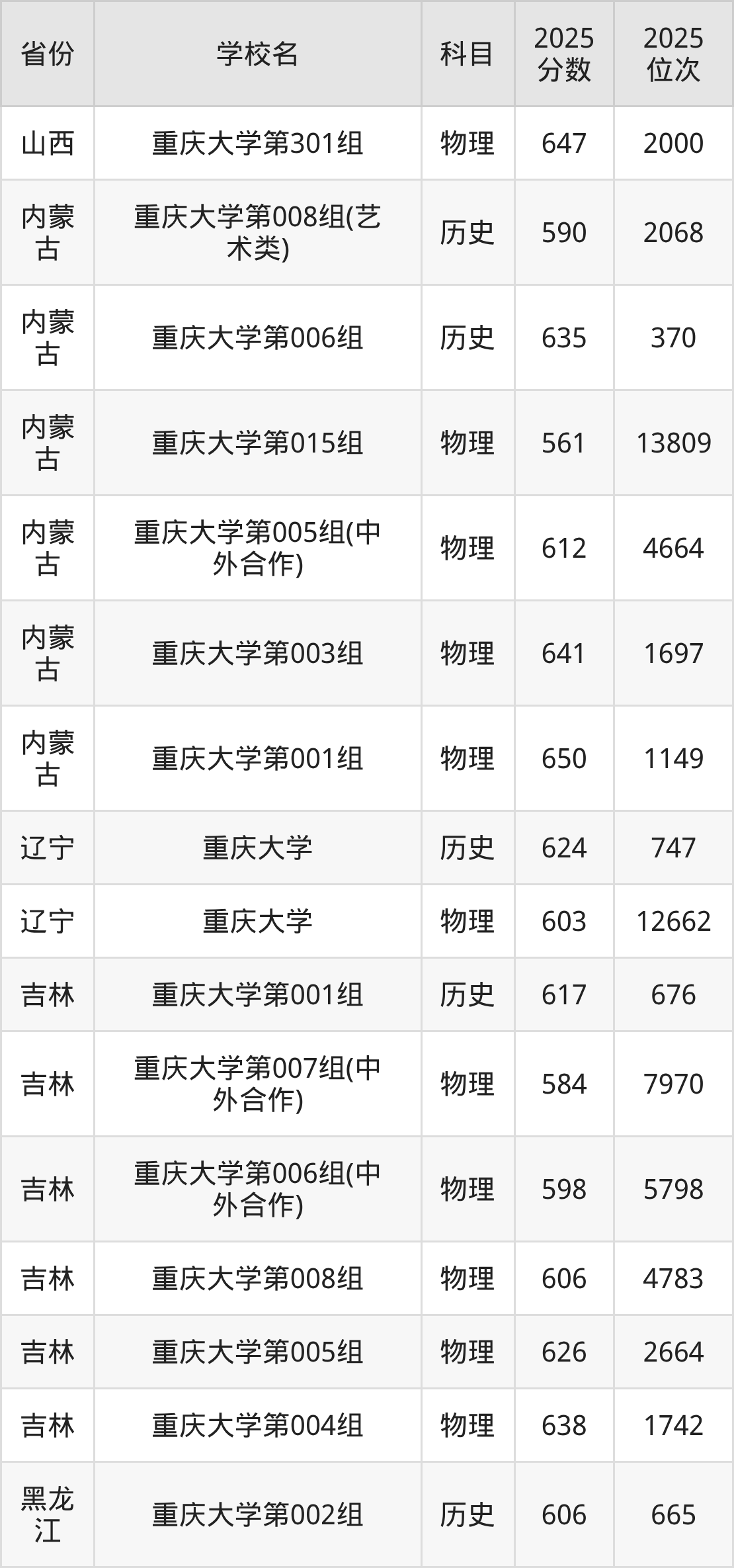 2025年重庆大学历史类最低分560分(5621名)、物理类最低分584分(17147名)。