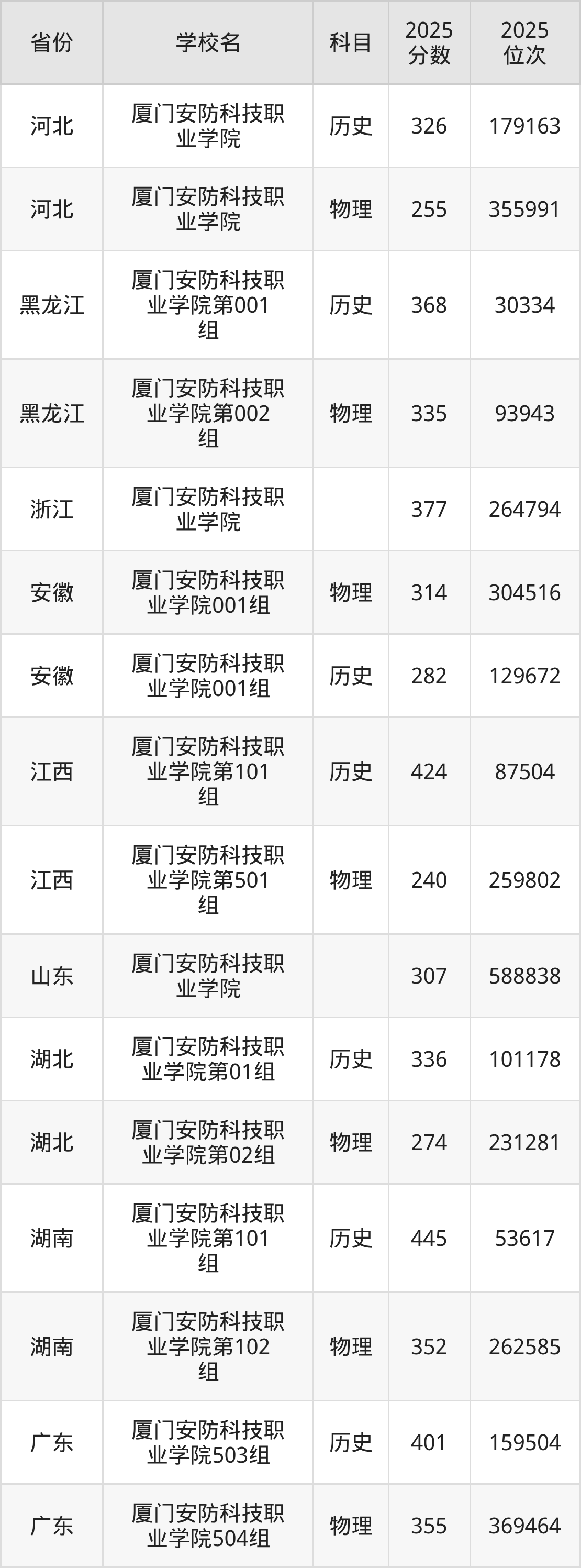 下面是厦门安防科技职业学院2025年录取分数线各省汇总,一起来了解下吧。