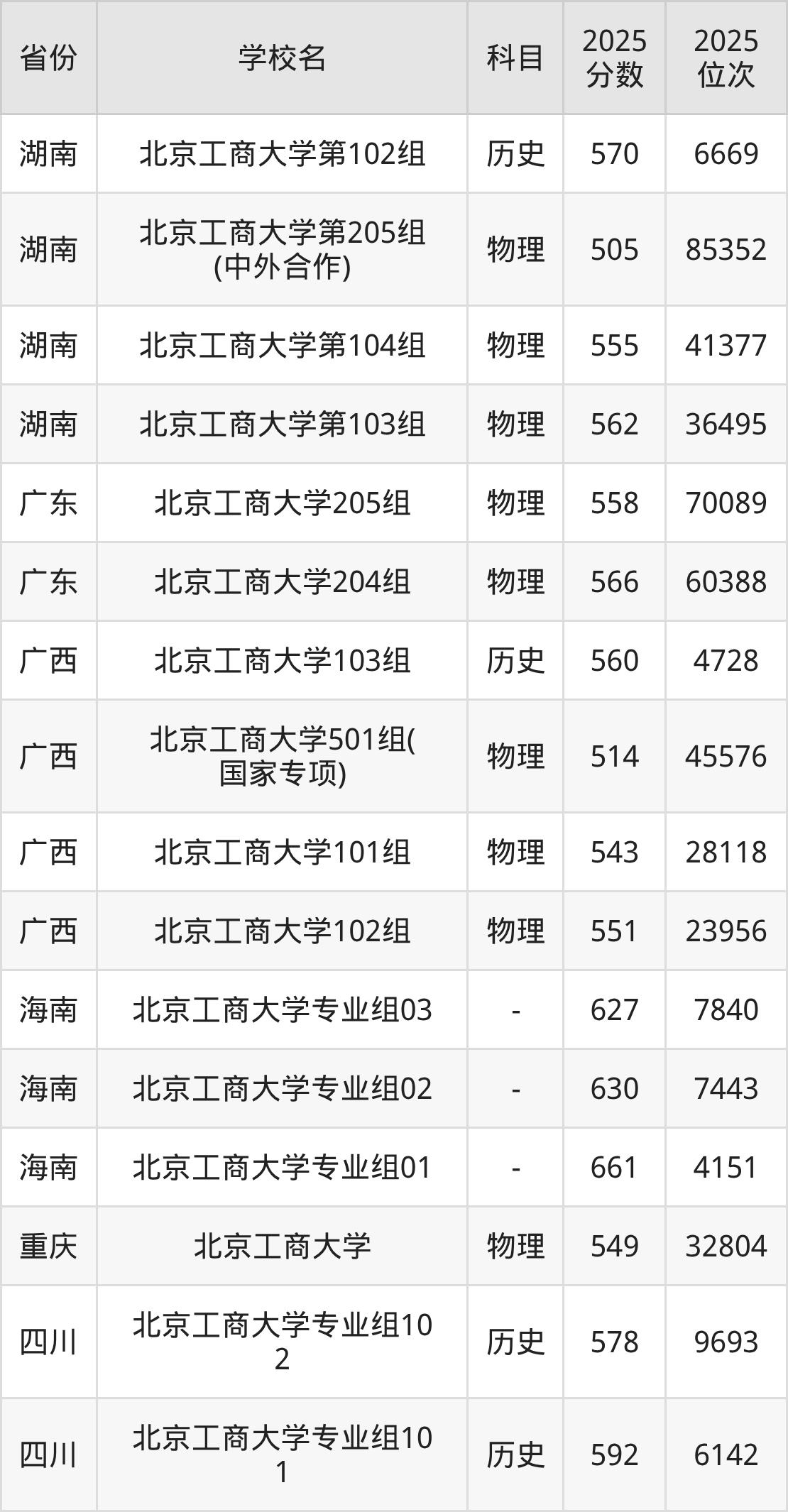 下面是北京工商大学2025年录取分数线各省汇总,一起来了解下吧。