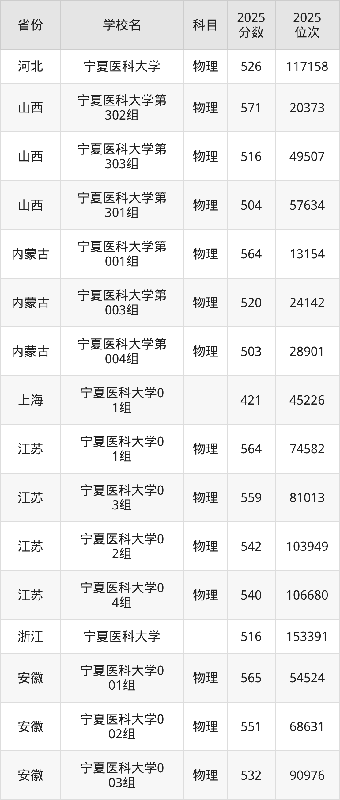 下面是宁夏医科大学2025年录取分数线各省汇总,一起来了解下吧。