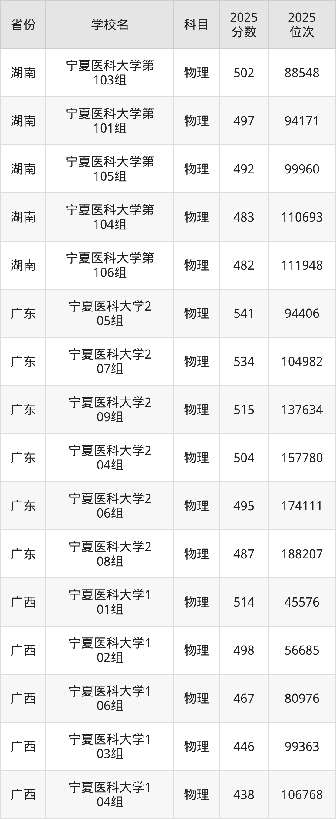 | 宁夏医科大学5 05专业组 | 物理 | 392 | 26102 |