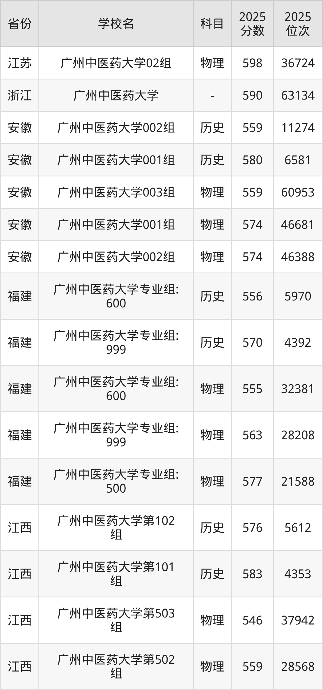 | 广州中医药大学 215组(地方 专项) | 物理 | 565 | 61026 |