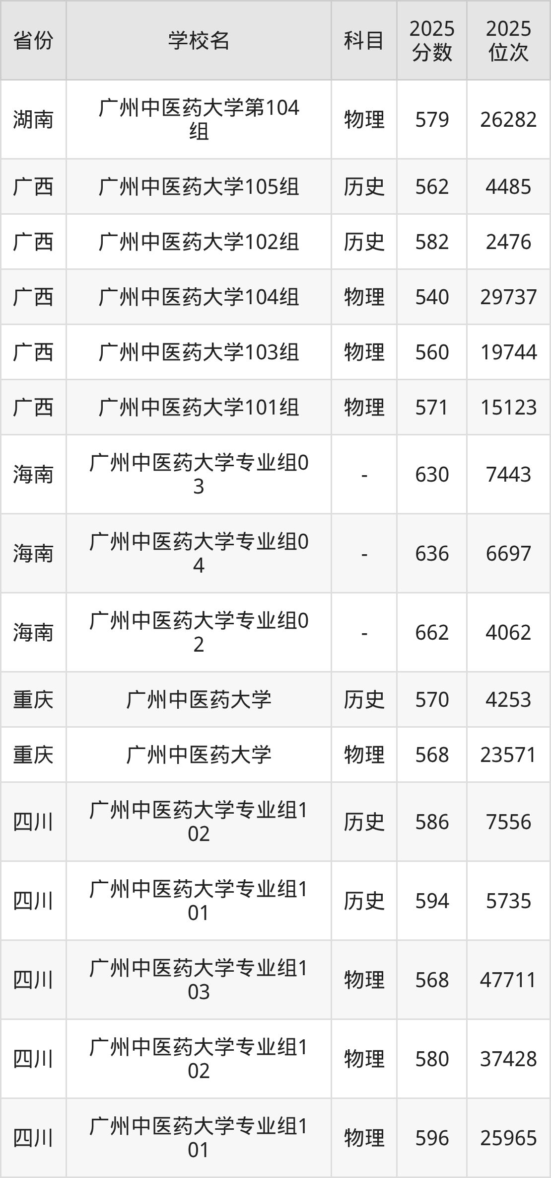 下面是广州中医药大学2025年录取分数线各省汇总,一起来了解下吧。