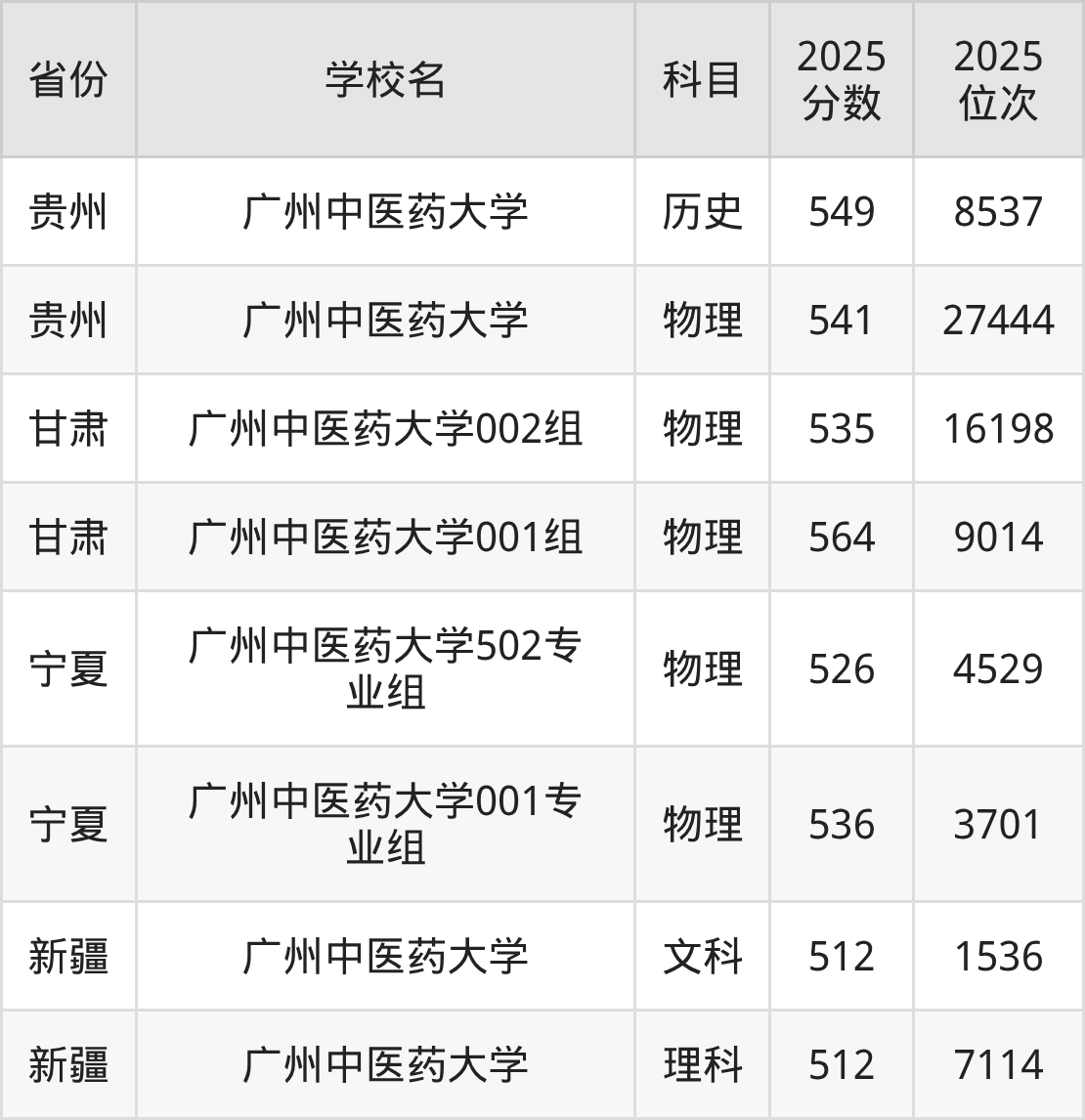 2025年广州中医药大学历史类最低分543分(27751名)、物理类最低分542分(93648名)。
