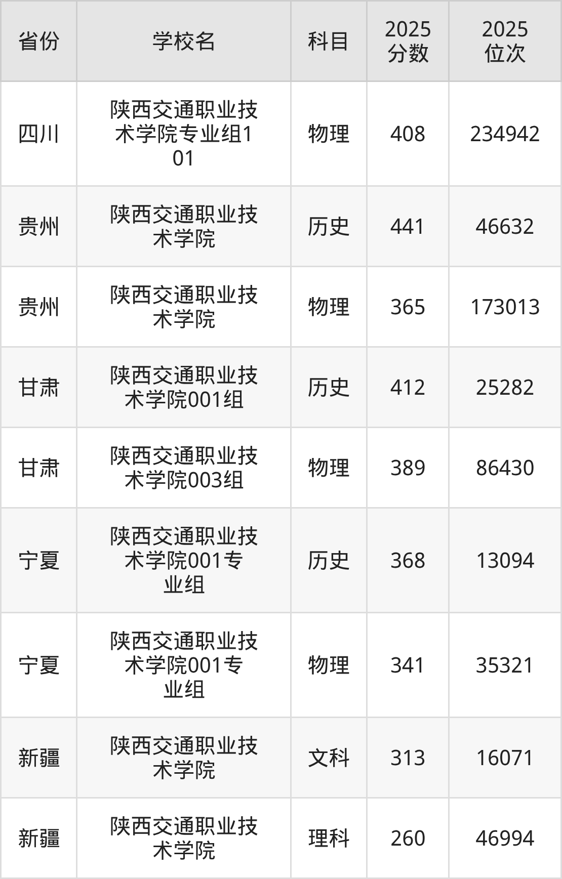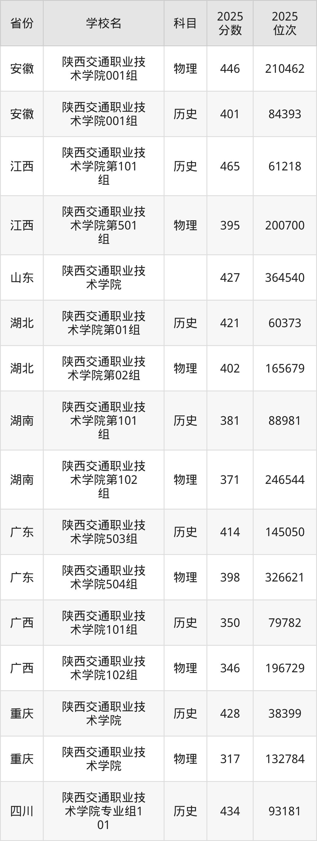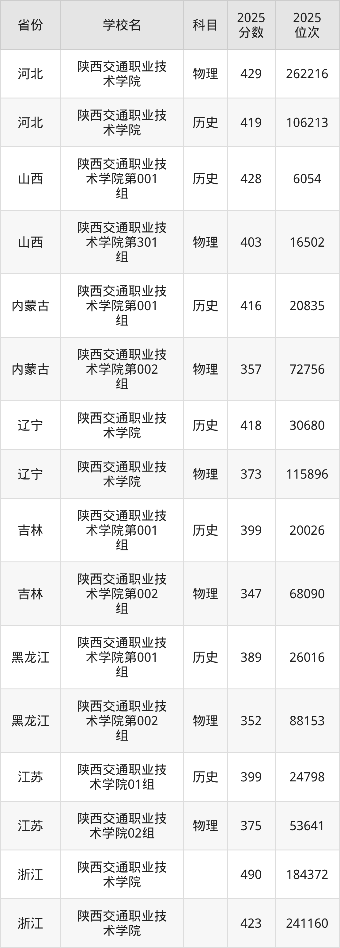 下面是陕西交通职业技术学院2025年录取分数线各省汇总,一起来了解下吧。