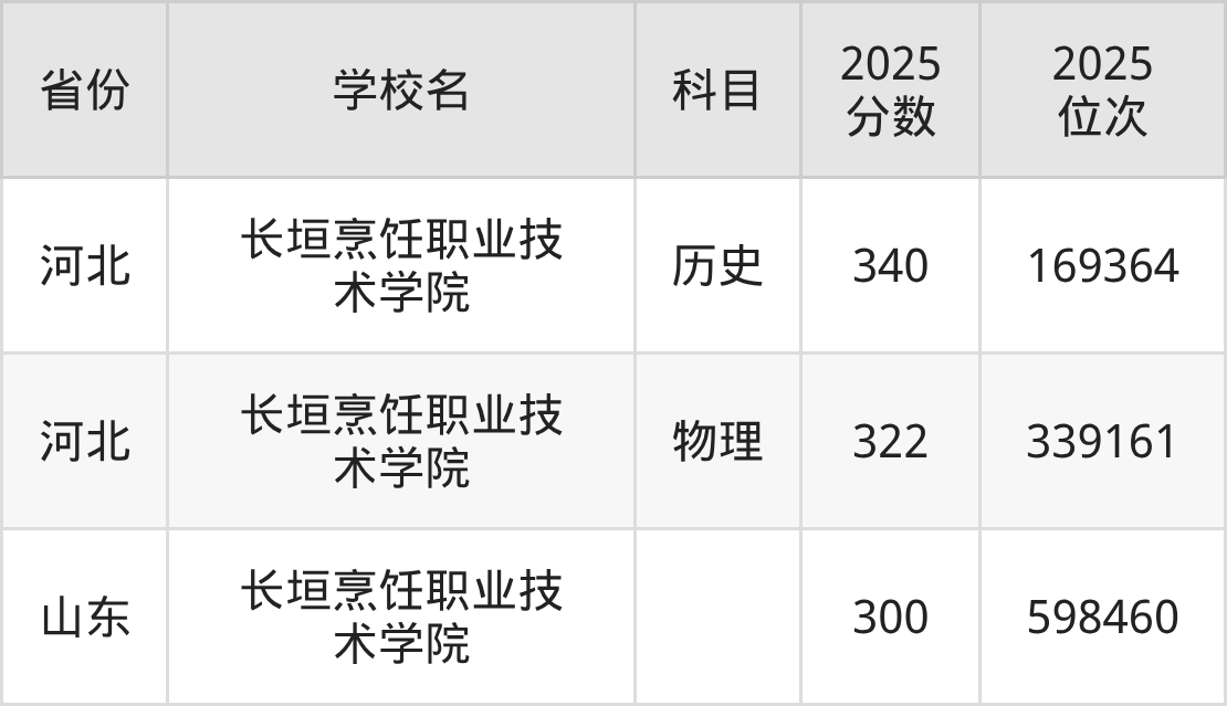 2025年长垣烹饪职业技术学院历史类最低分340分(169364名)、物理类最低分322分(339161名)。