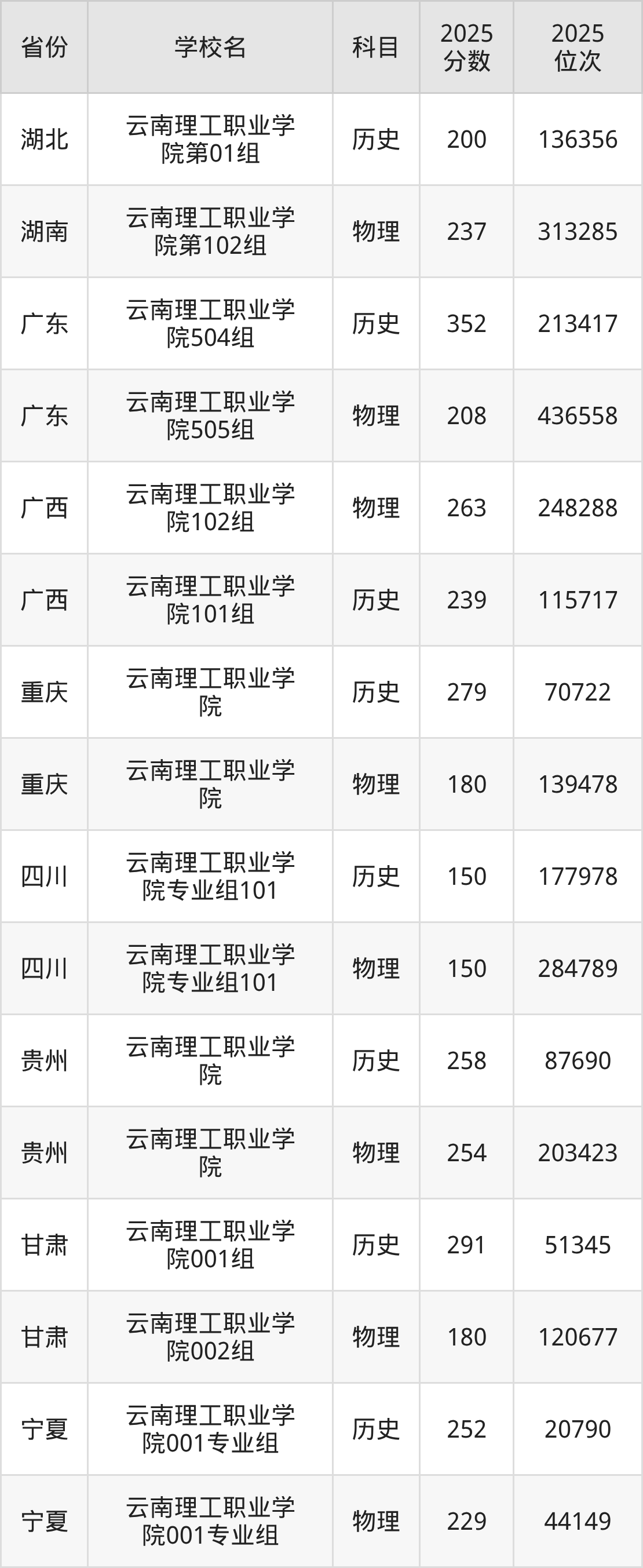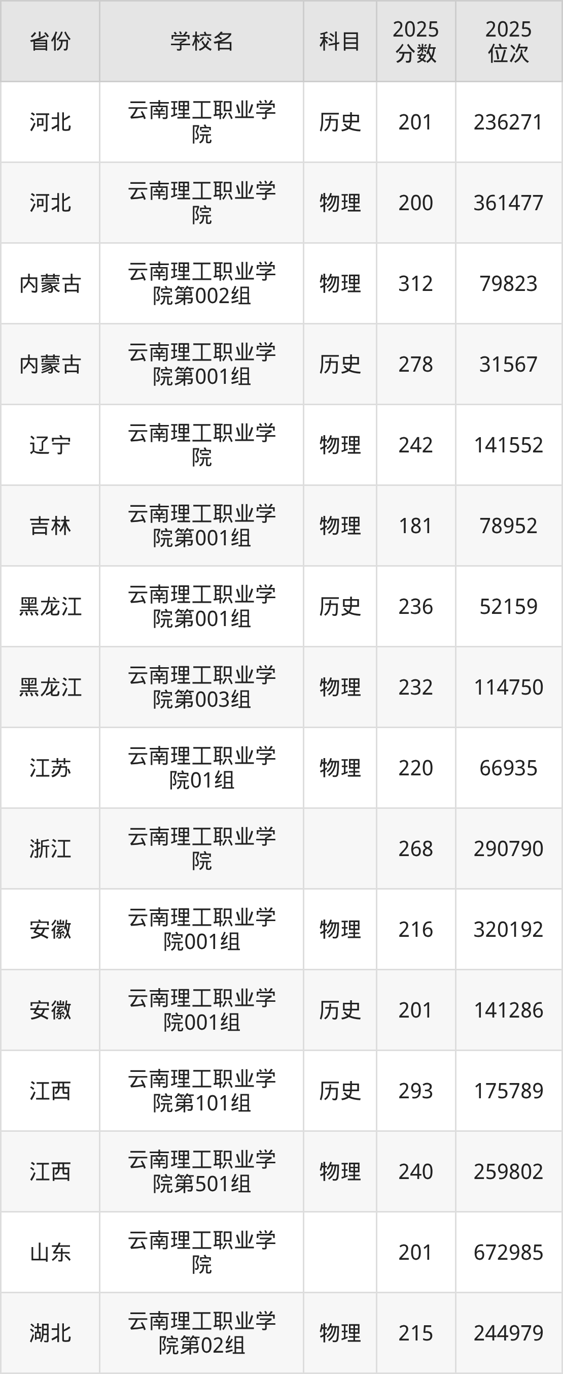 下面是云南理工职业学院2025年录取分数线各省汇总,一起来了解下吧。
