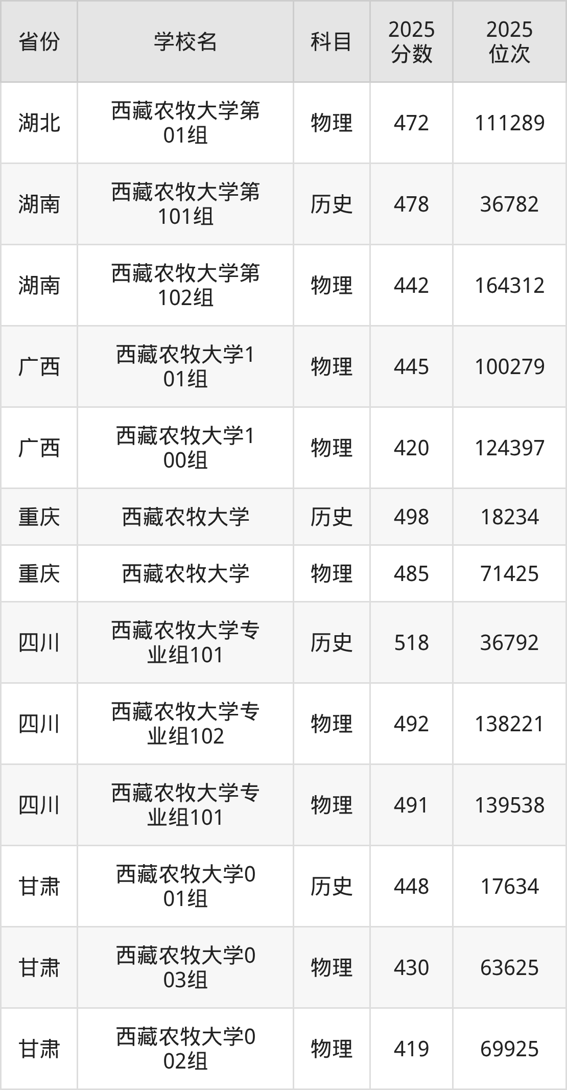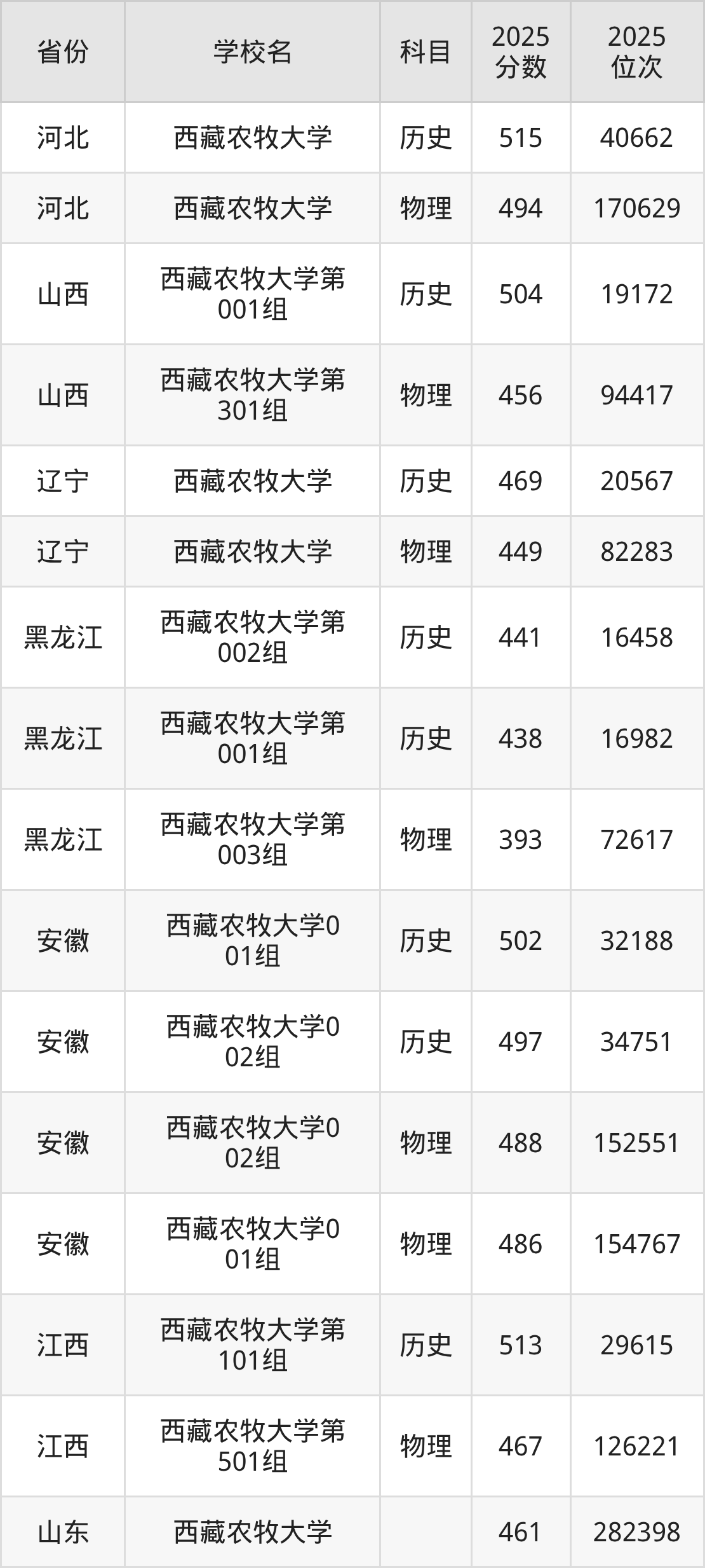 下面是西藏农牧大学2025年录取分数线各省汇总,一起来了解下吧。