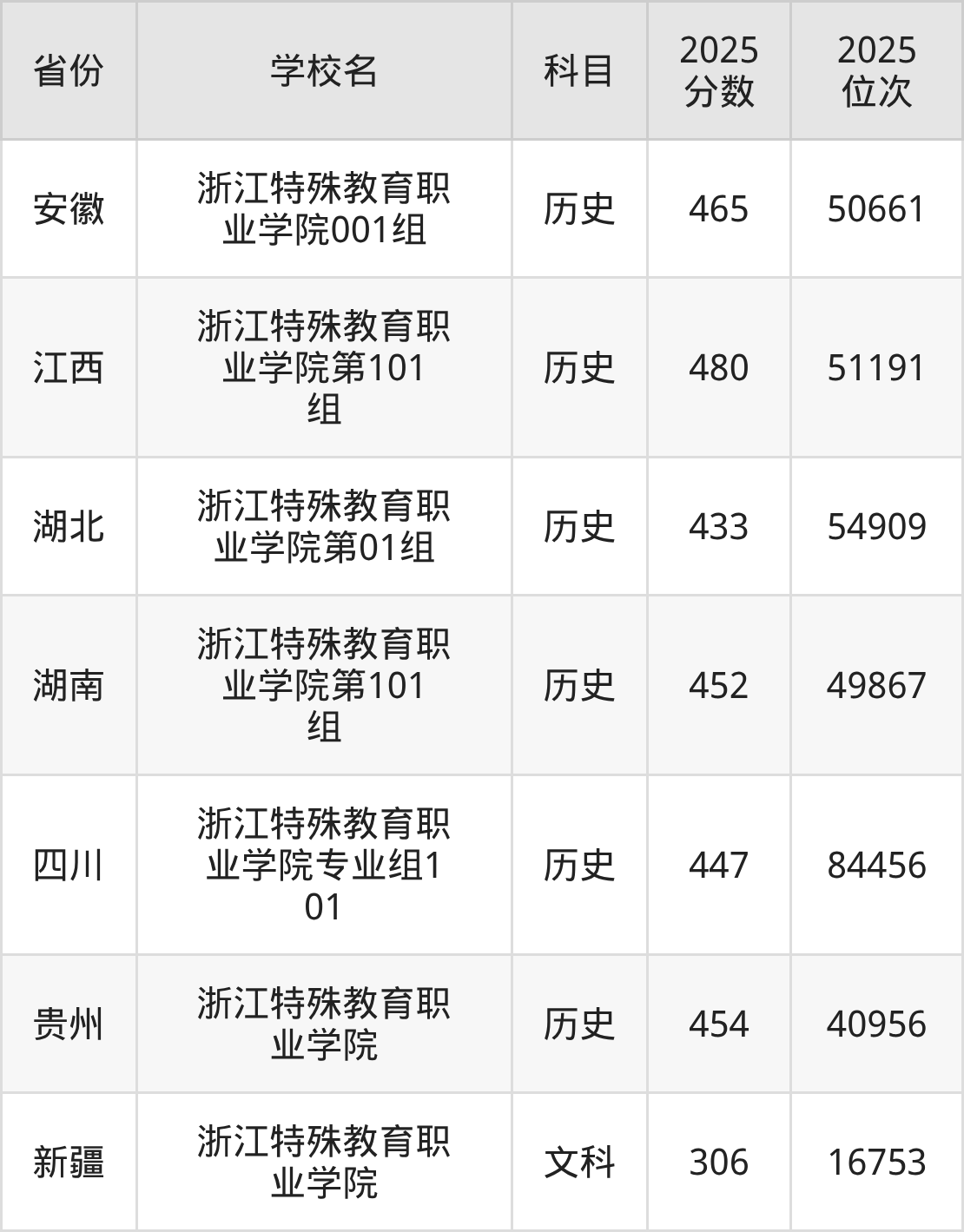 下面是浙江特殊教育职业学院2025年录取分数线各省汇总,一起来了解下吧。