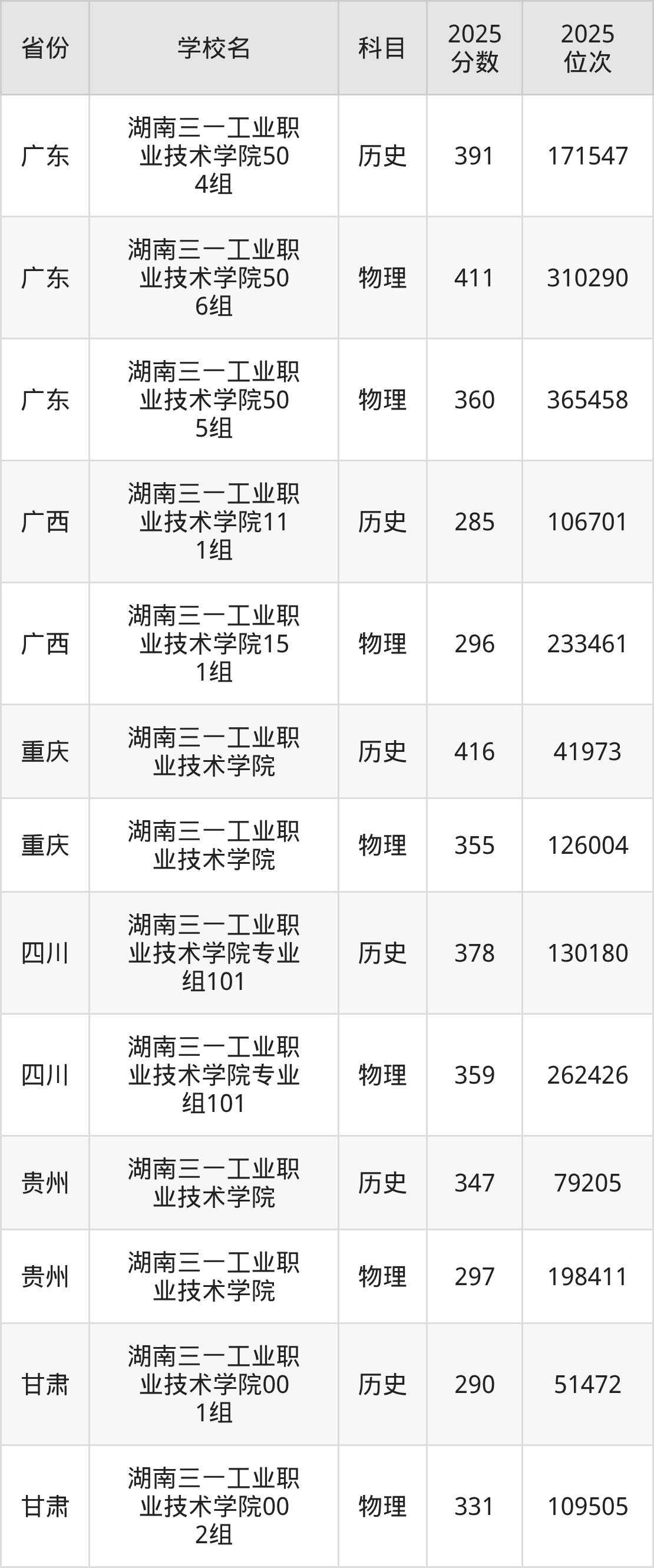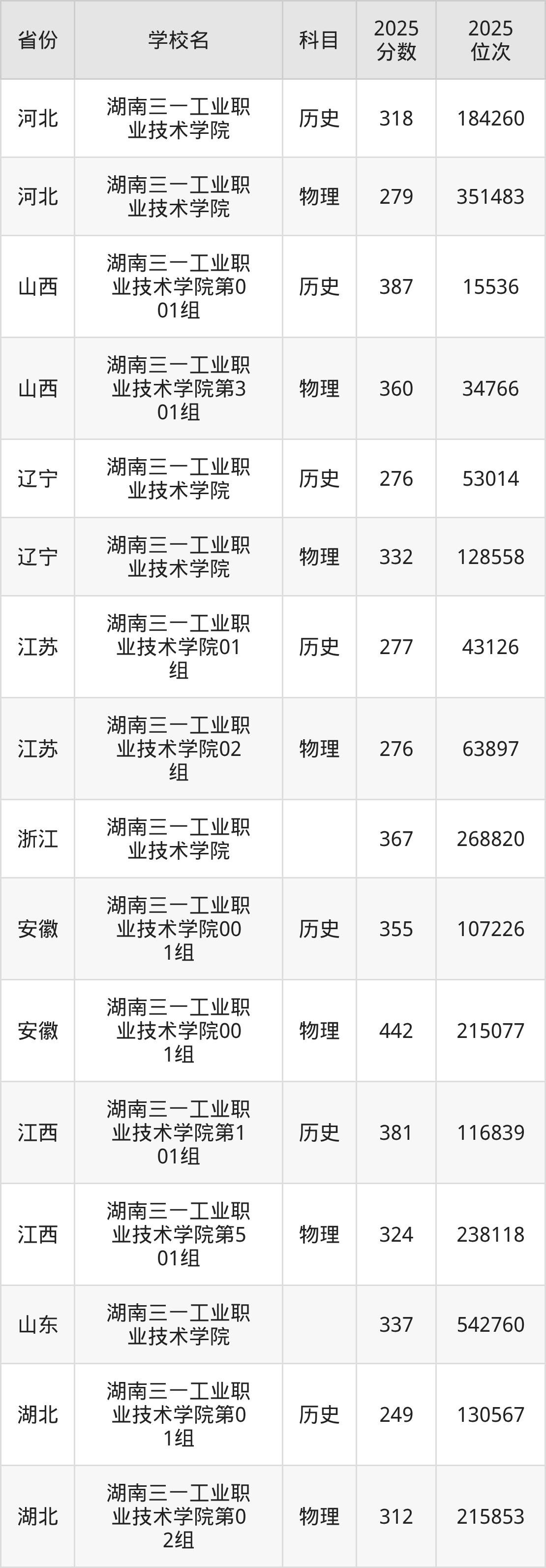 2025年湖南三一工业职业技术学院历史类最低分247分(136063名)。