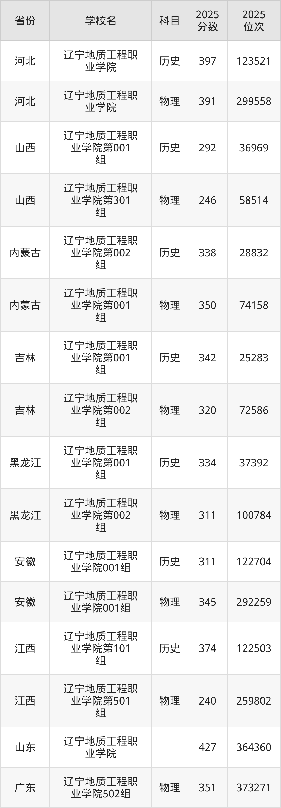 下面是辽宁地质工程职业学院2025年录取分数线各省汇总,一起来了解下吧。