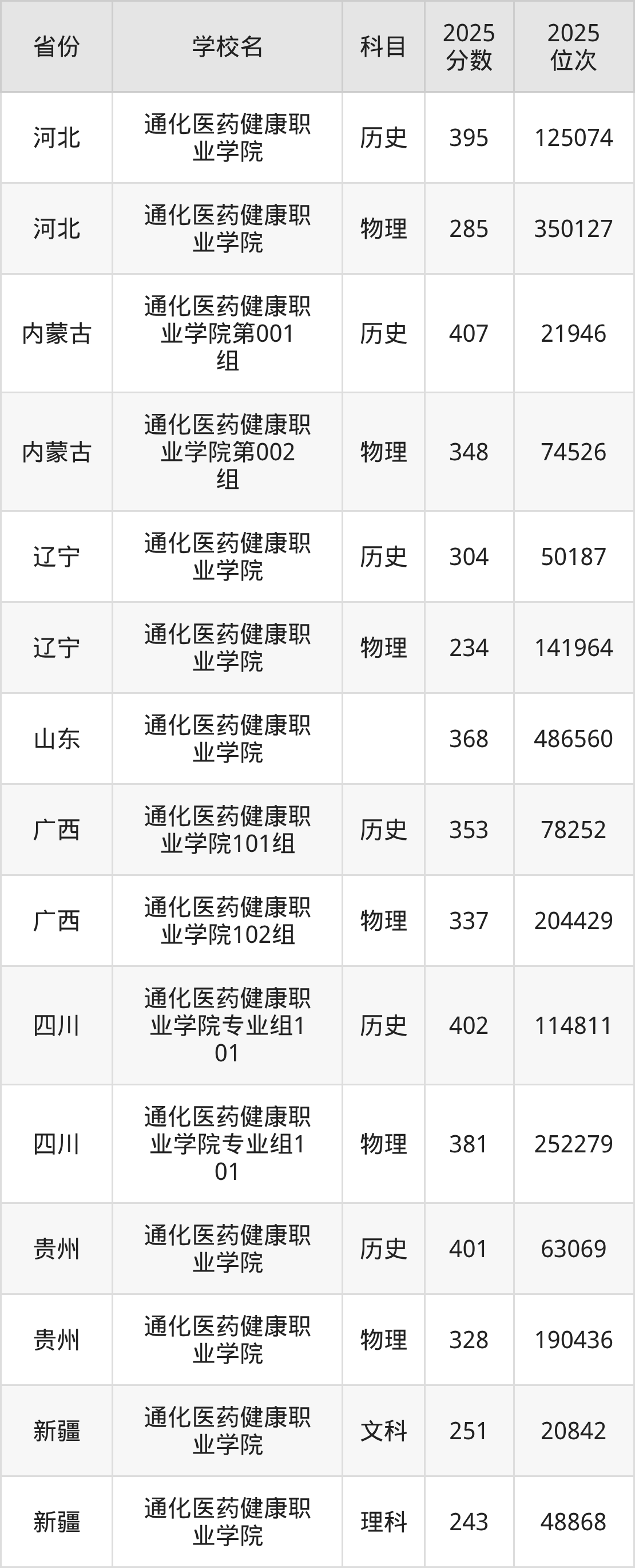下面是通化医药健康职业学院2025年录取分数线各省汇总,一起来了解下吧。