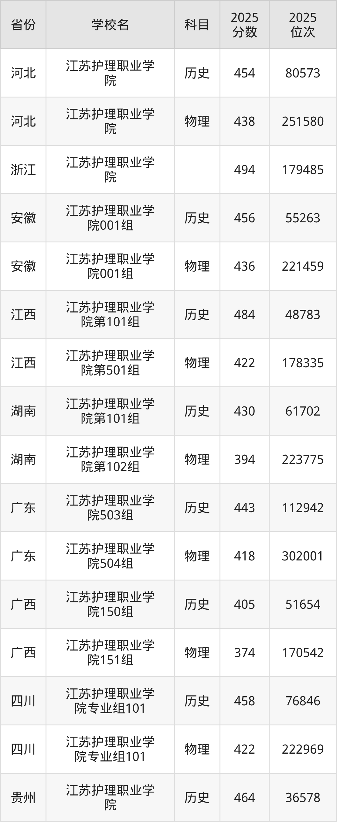 2026年江苏护理职业学院录取分数线预计在410分及以上,在各省录取最低分存在一定差异,如:2025年江苏护理职业学院在江苏录取最低历史类414分、物理类220分,在浙江录取最低分是494分,在江西录取最低历史类484分、物理类422分。