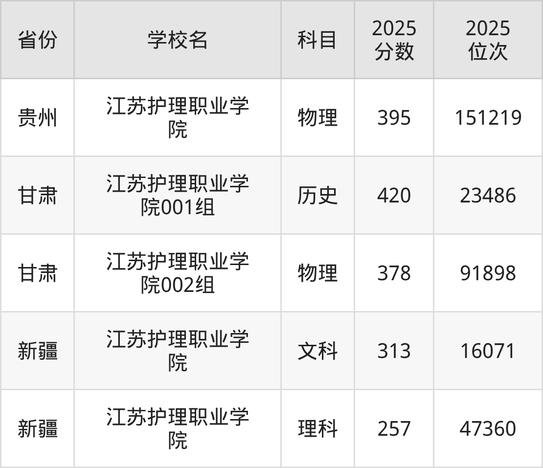 下面是江苏护理职业学院2025年录取分数线各省汇总,一起来了解下吧。
