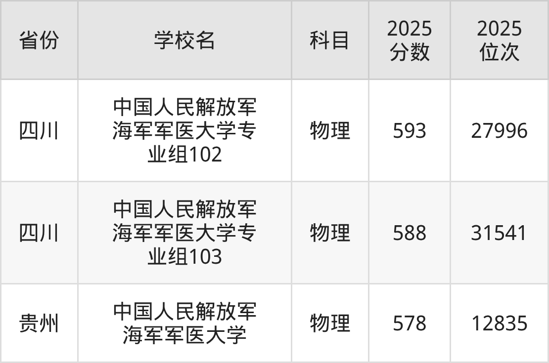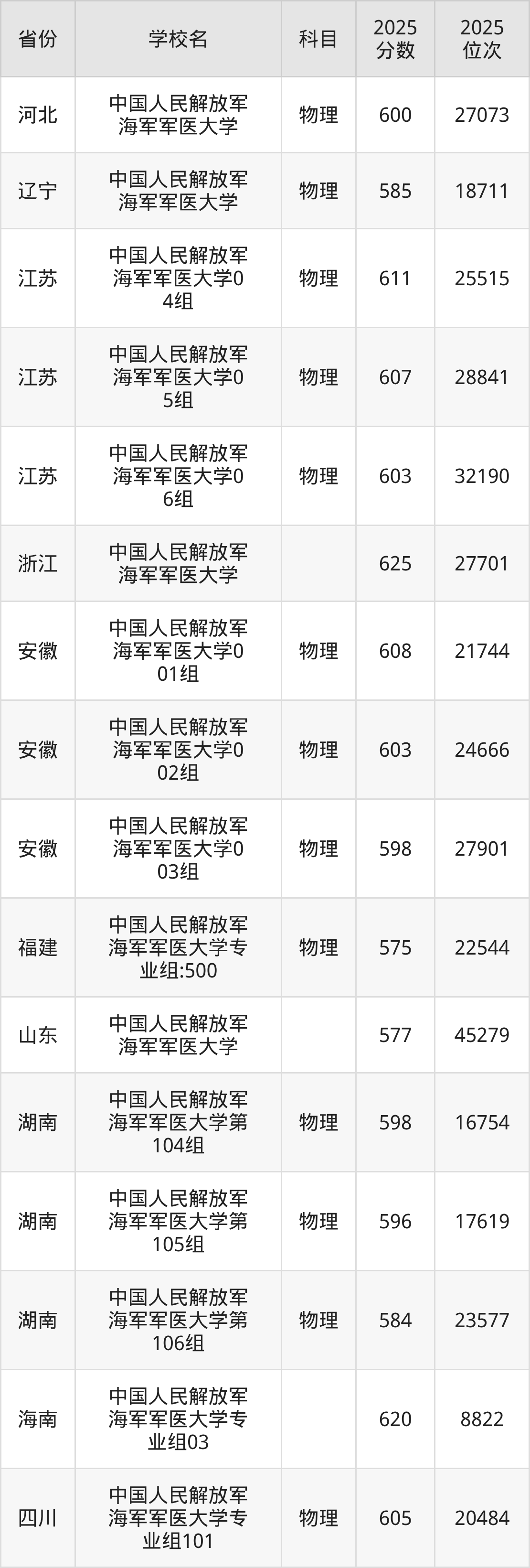2025年中国人民解放军海军军医大学最低分544分(12020名)。
