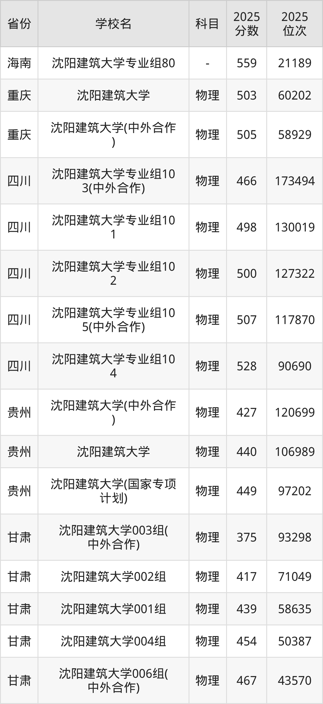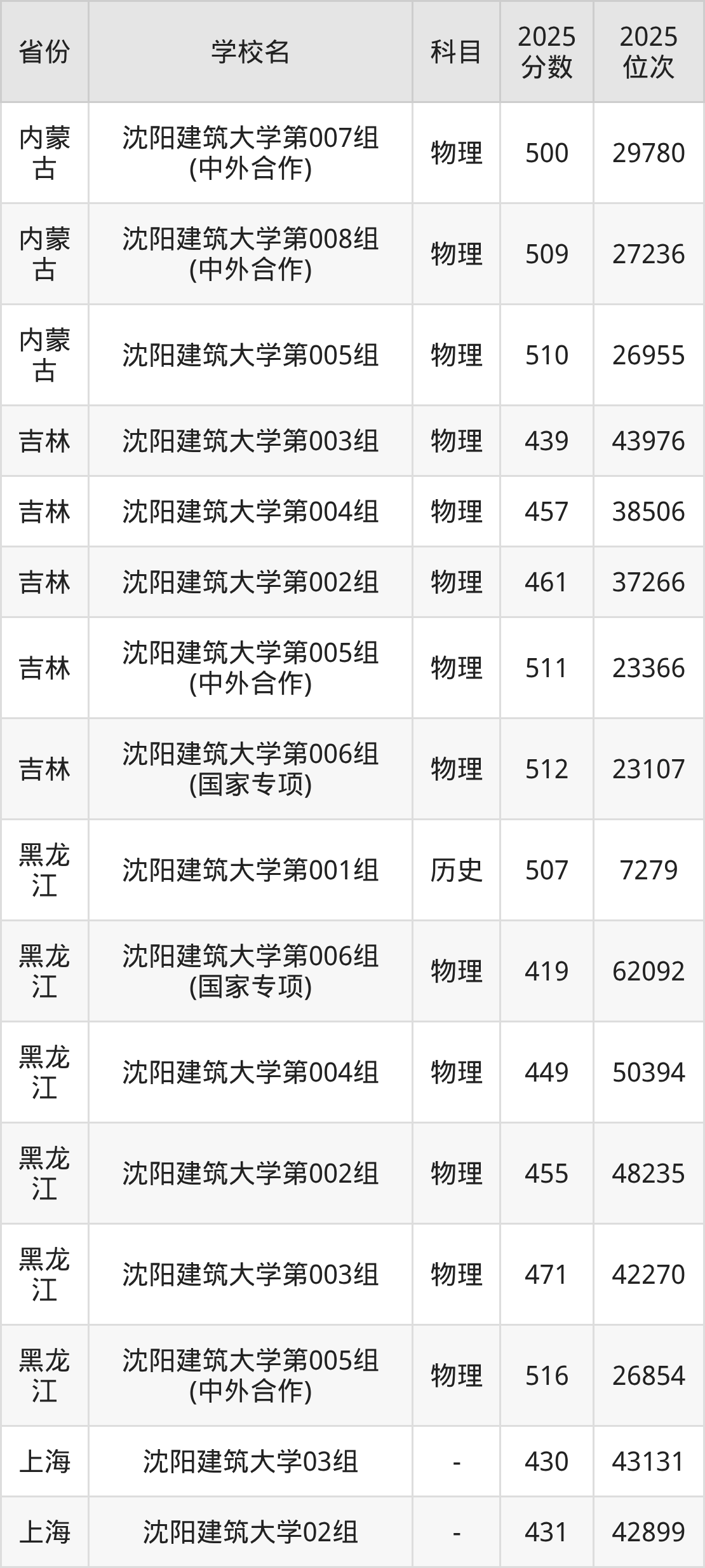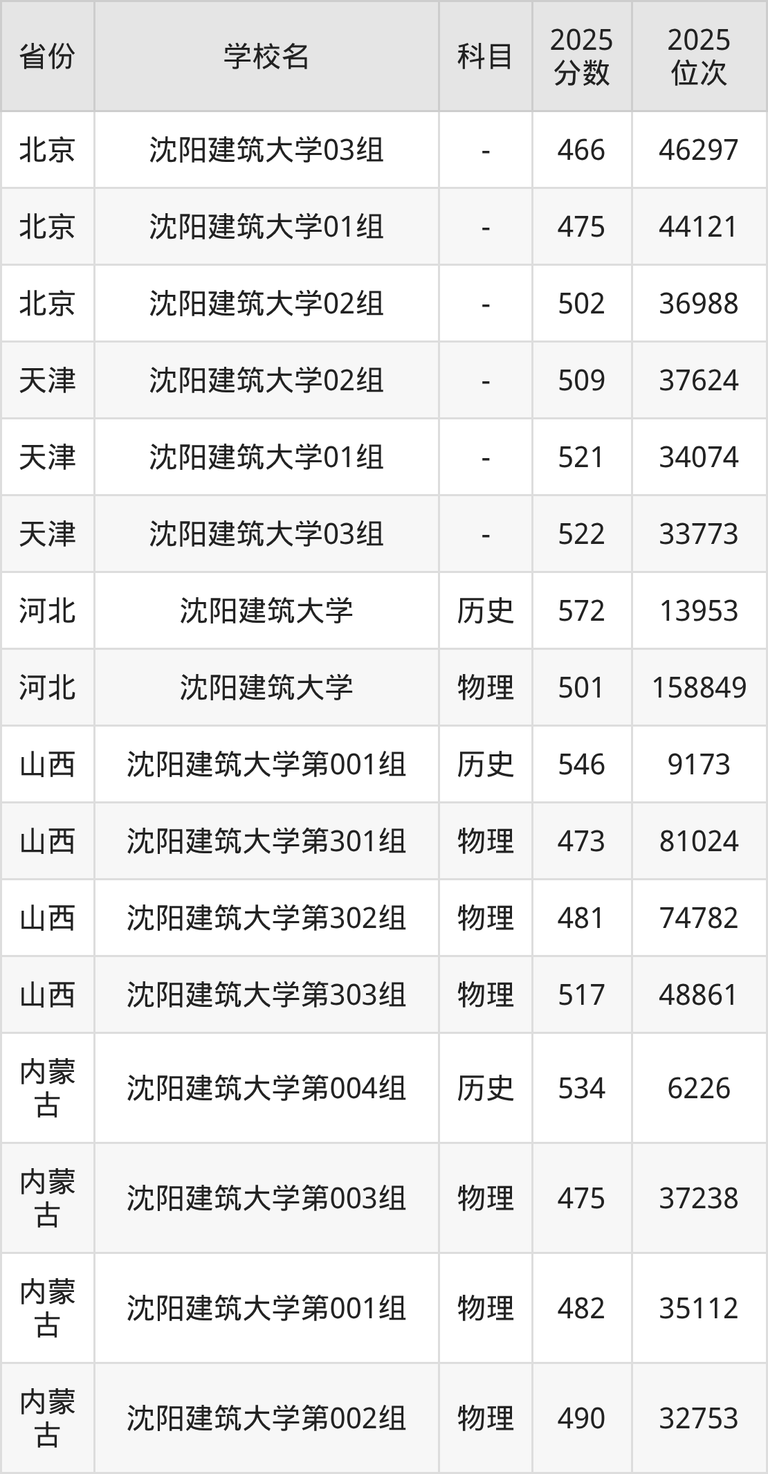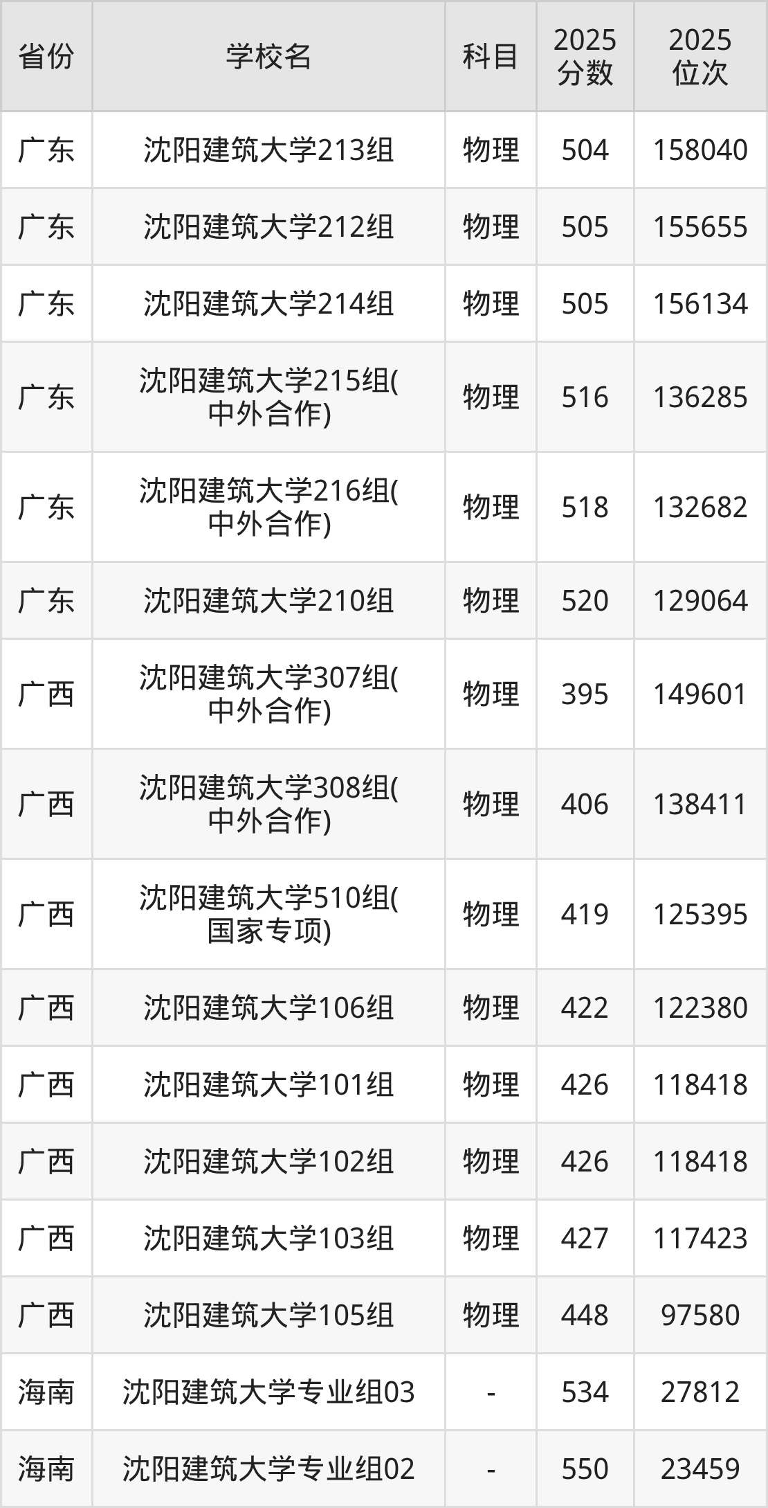 2025年沈阳建筑大学历史类最低分520分(11526名)、物理类最低分448分(82763名)。