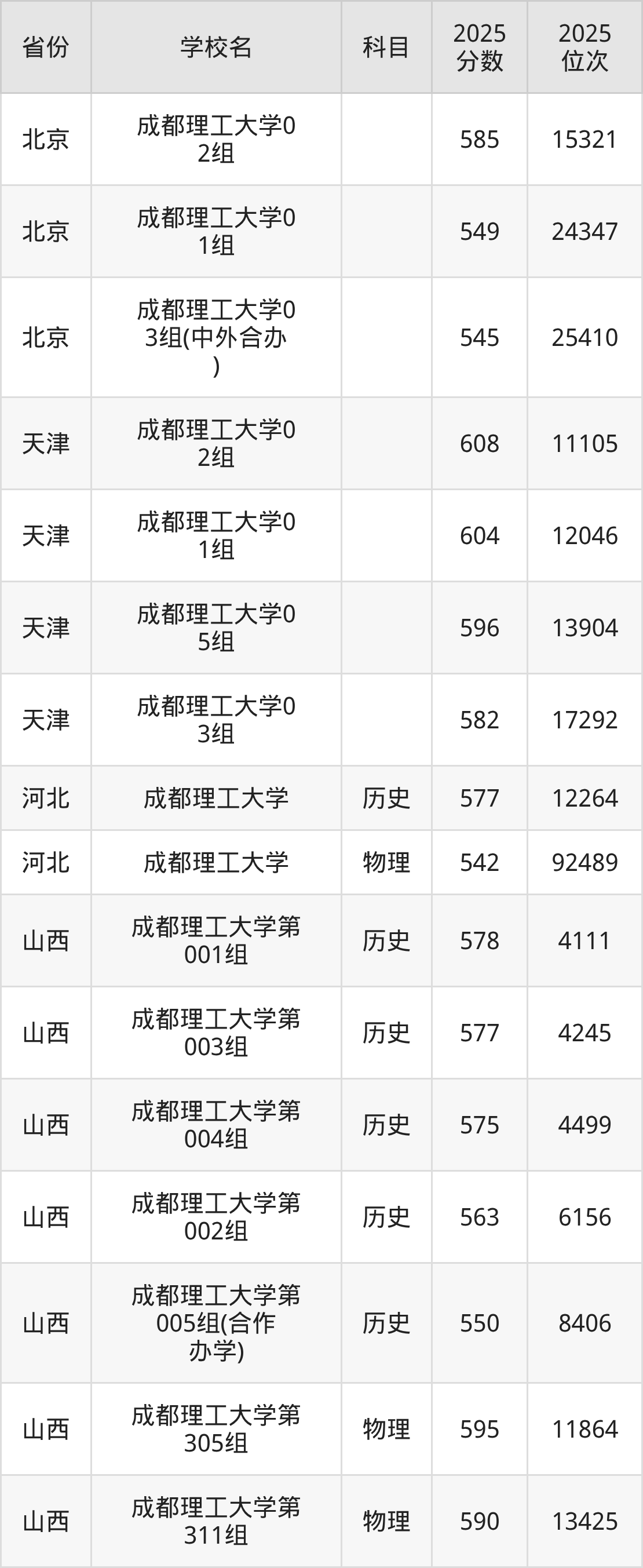 下面是成都理工大学2025年录取分数线各省汇总,一起来了解下吧。