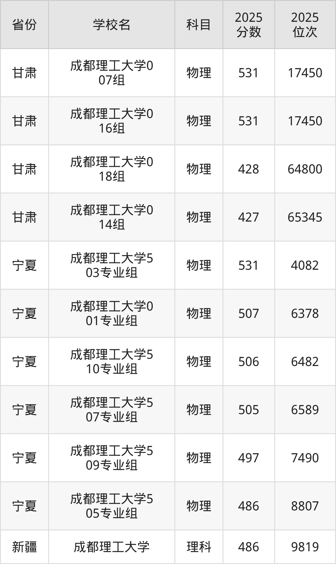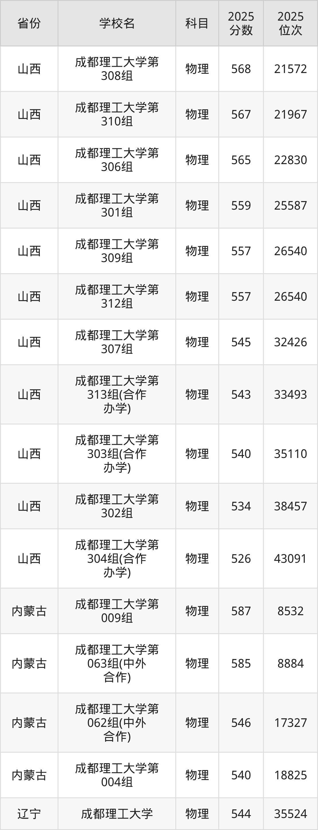 | 成都理工大学专 业组120 | 物理 | 576 | 40707 |