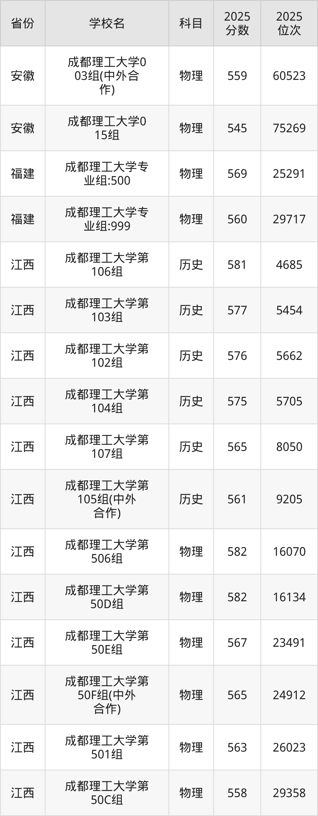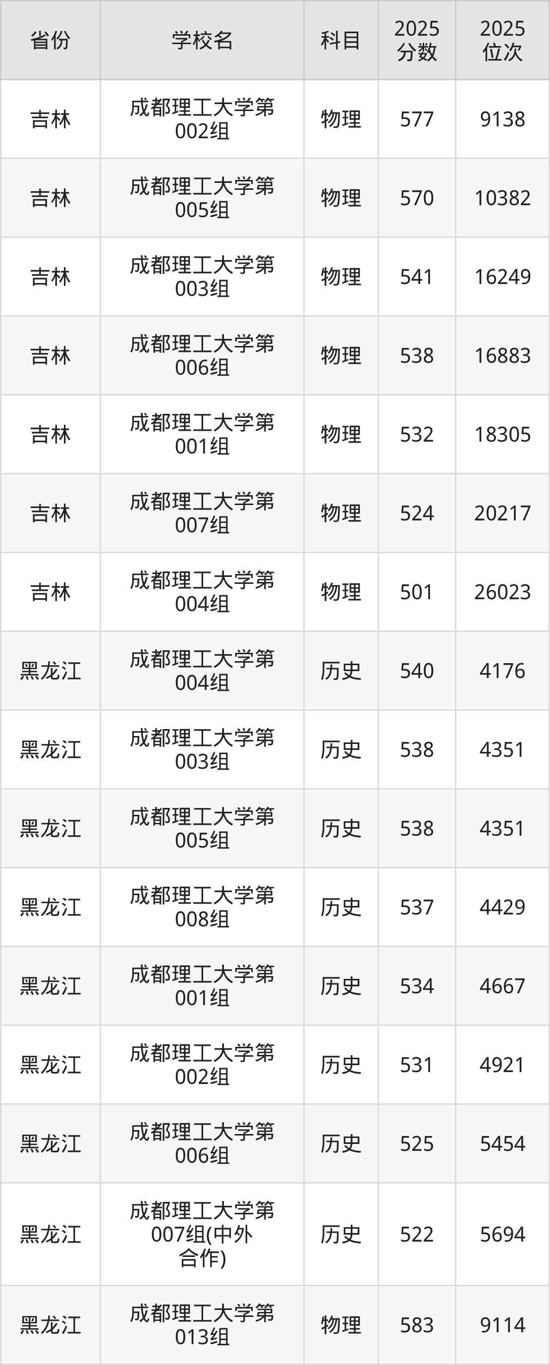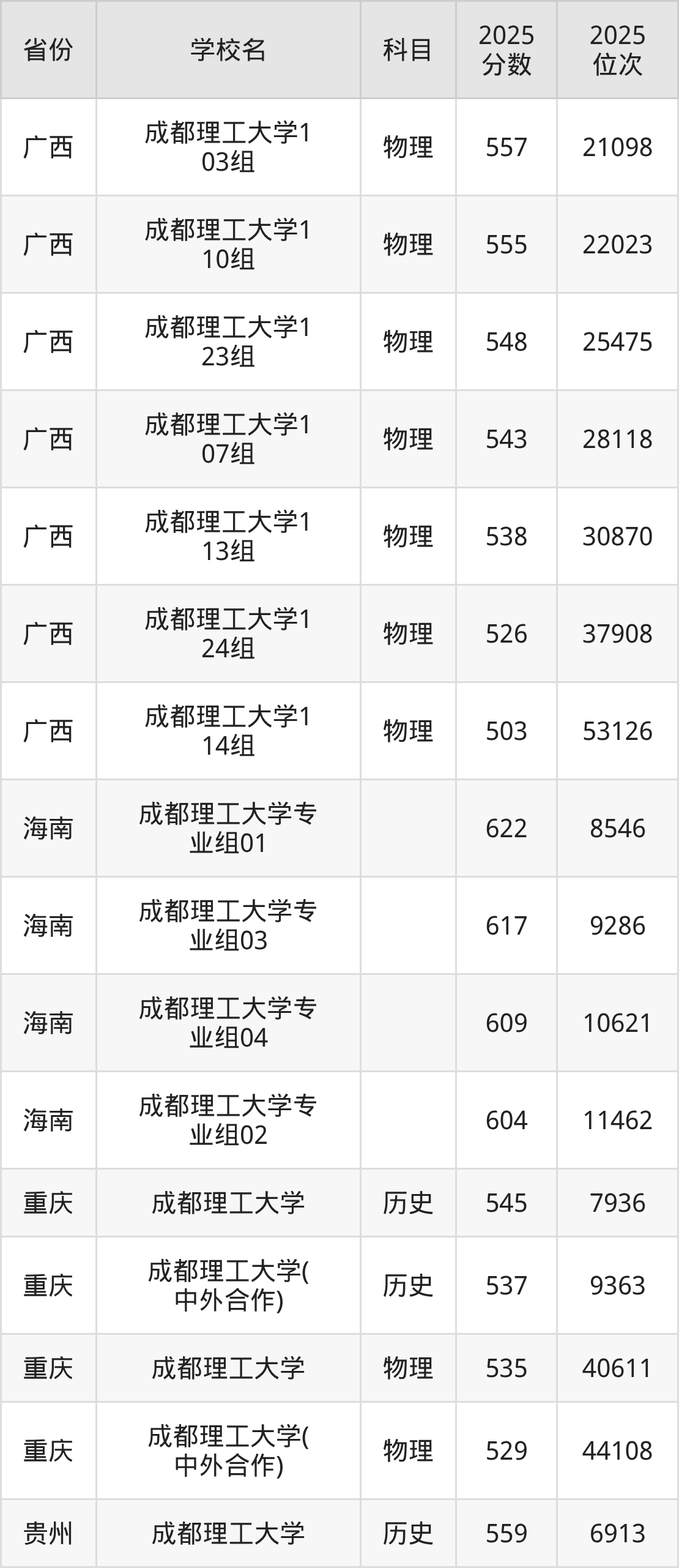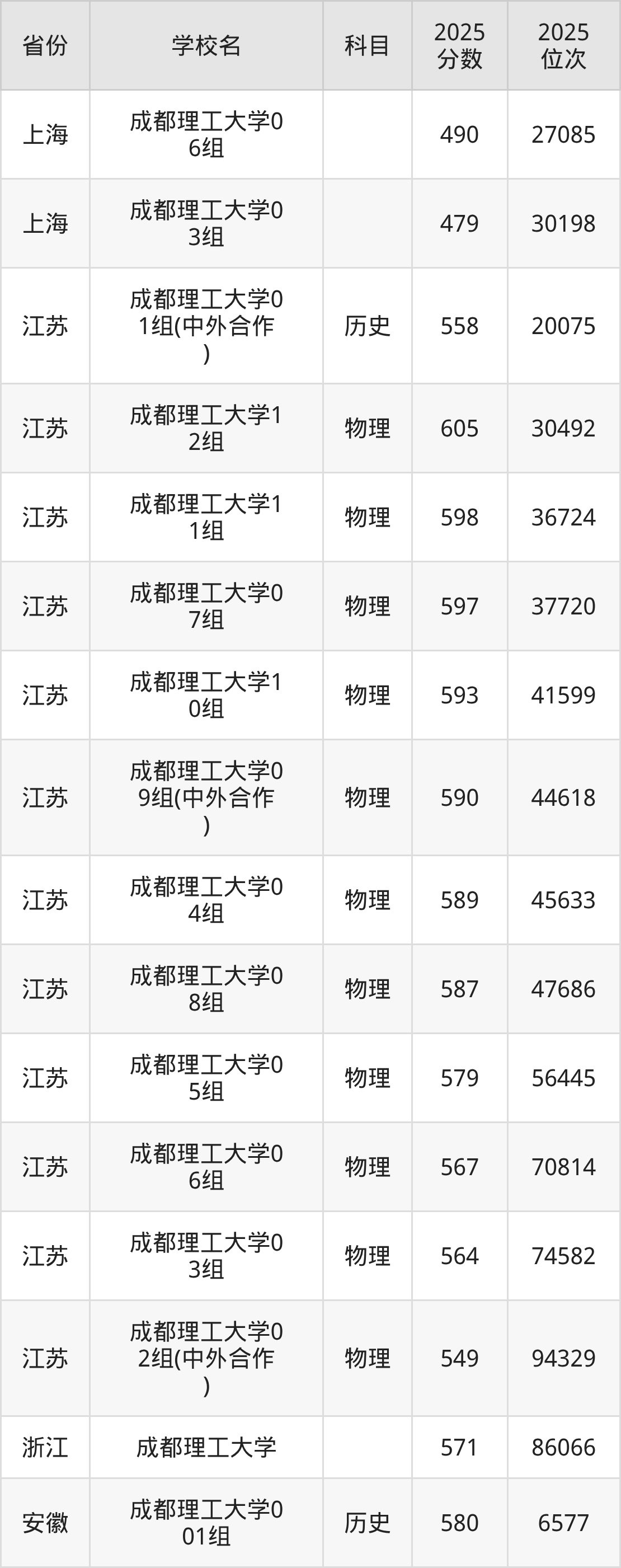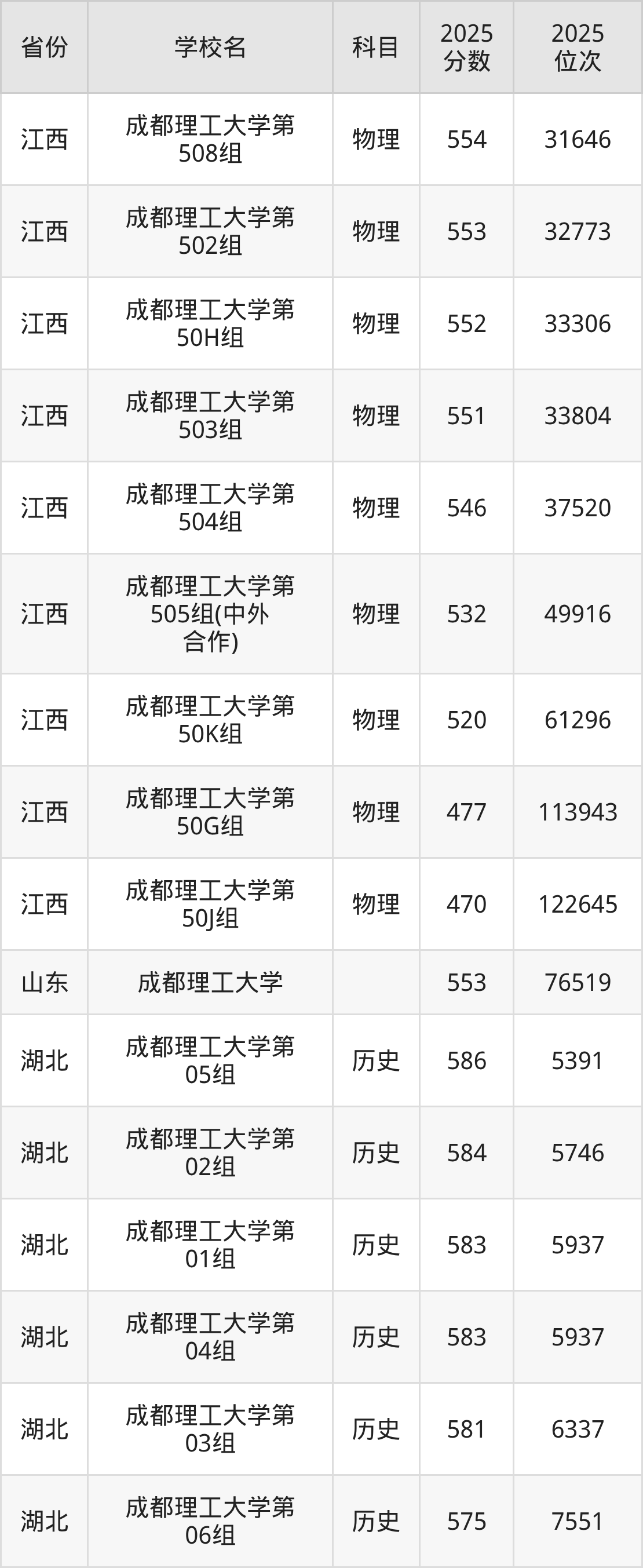 | 成都理工大学专 业组110 | 历史 | 577 | 10008 |